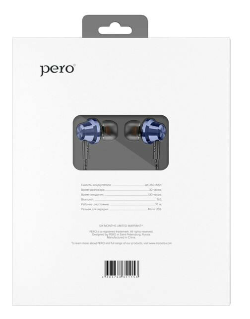 PERO Наушники PERO BE01, беспроводные, BT 5.0, микрофон, 250 мАч, до 30 часов, синие интересное: