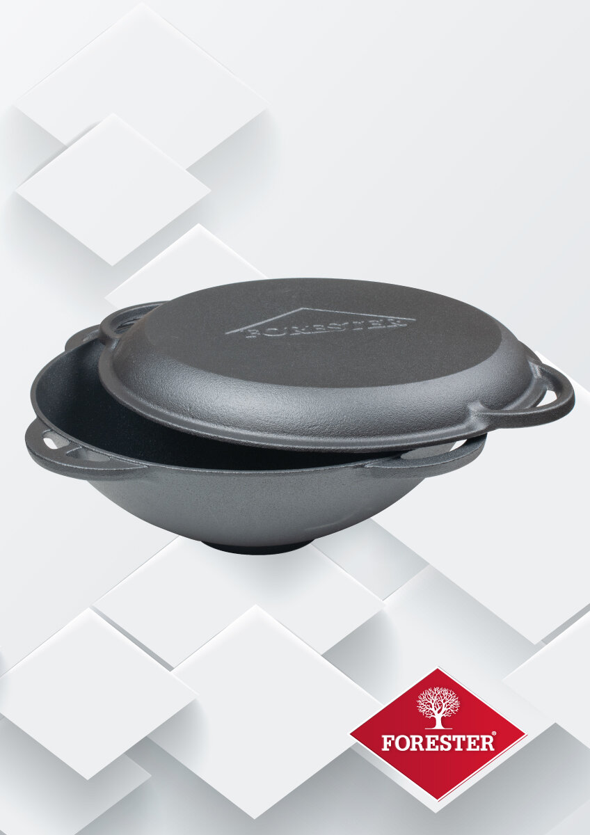 Казан-ВОК чугунный с крышкой-сковородой Forester 5 л FORESTER CI-01V | цена за 1 шт