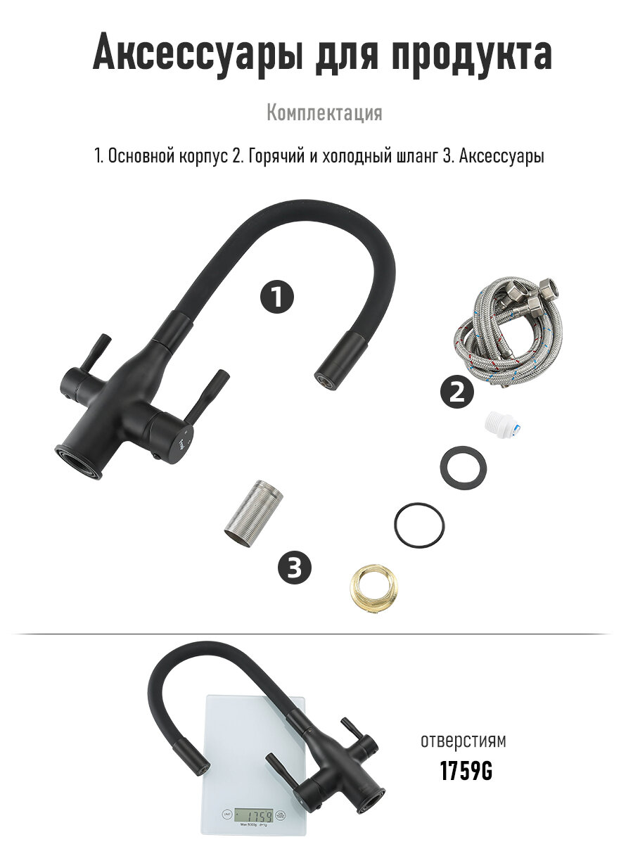 Смеситель для кухни под фильтр с гибким, поворотным изливом Frap F4396-6 черный
