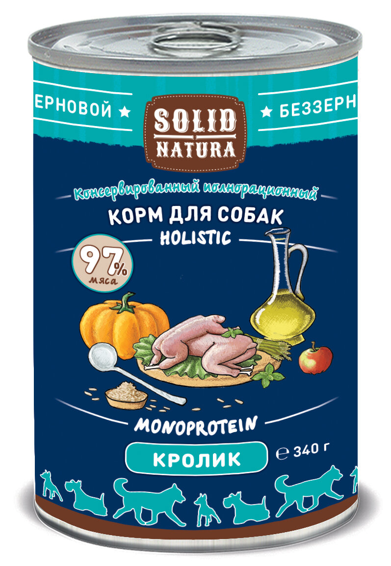 Влажный корм для собак, Solid Natura Holistic, кролик, упаковка 6 шт х 340 г