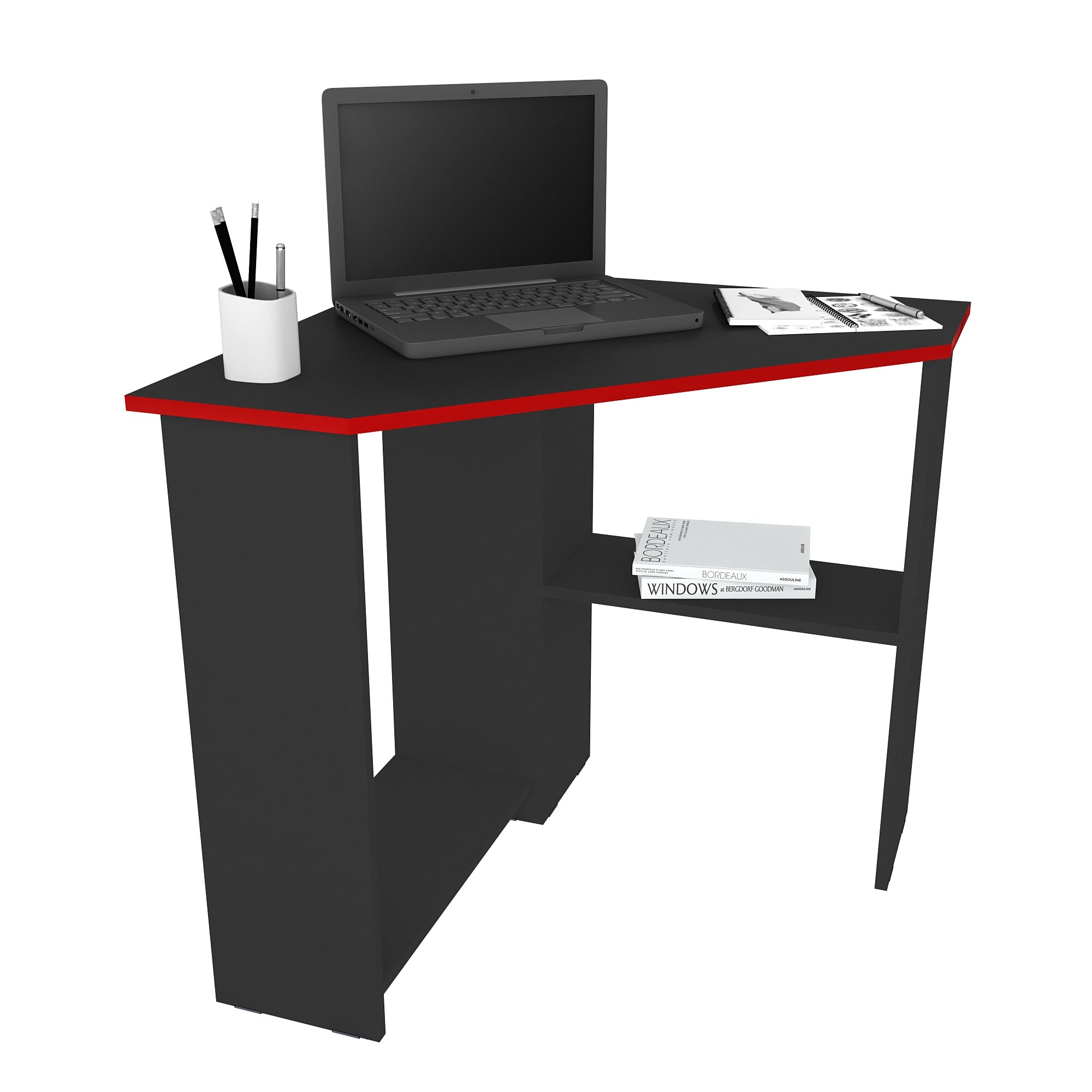 Письменный стол, компьютерный стол угловой с полками Corner 900 Черный/Красный, 90*90 см.