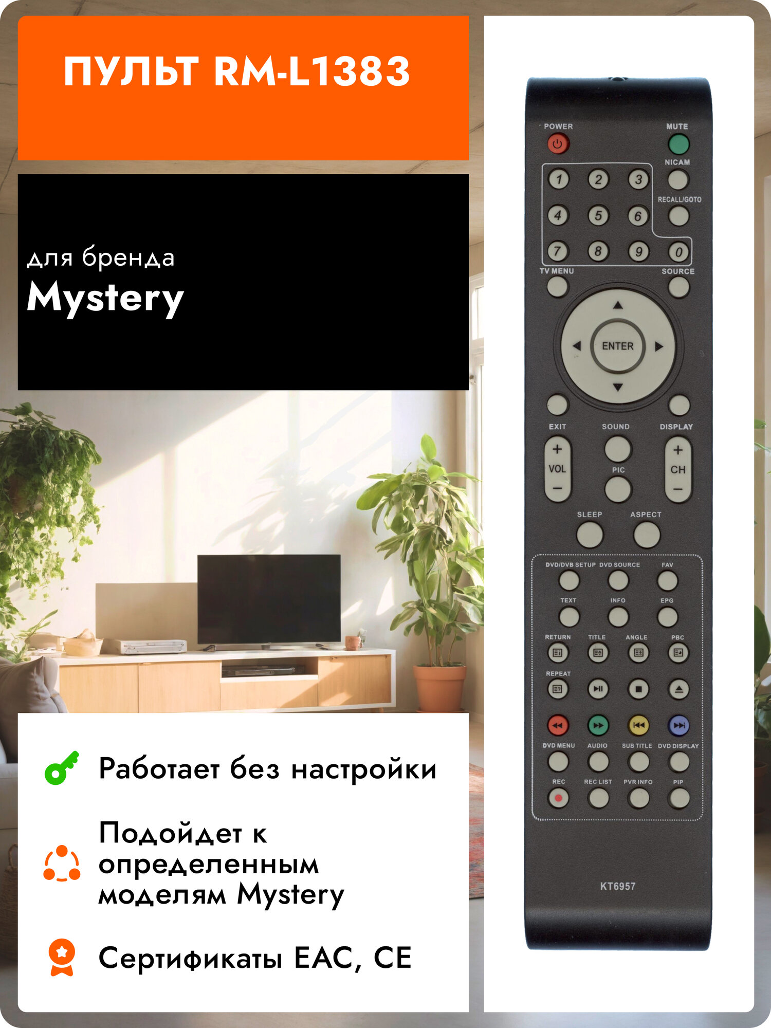 Купить Пульт KT6957 для телевизора Mystery