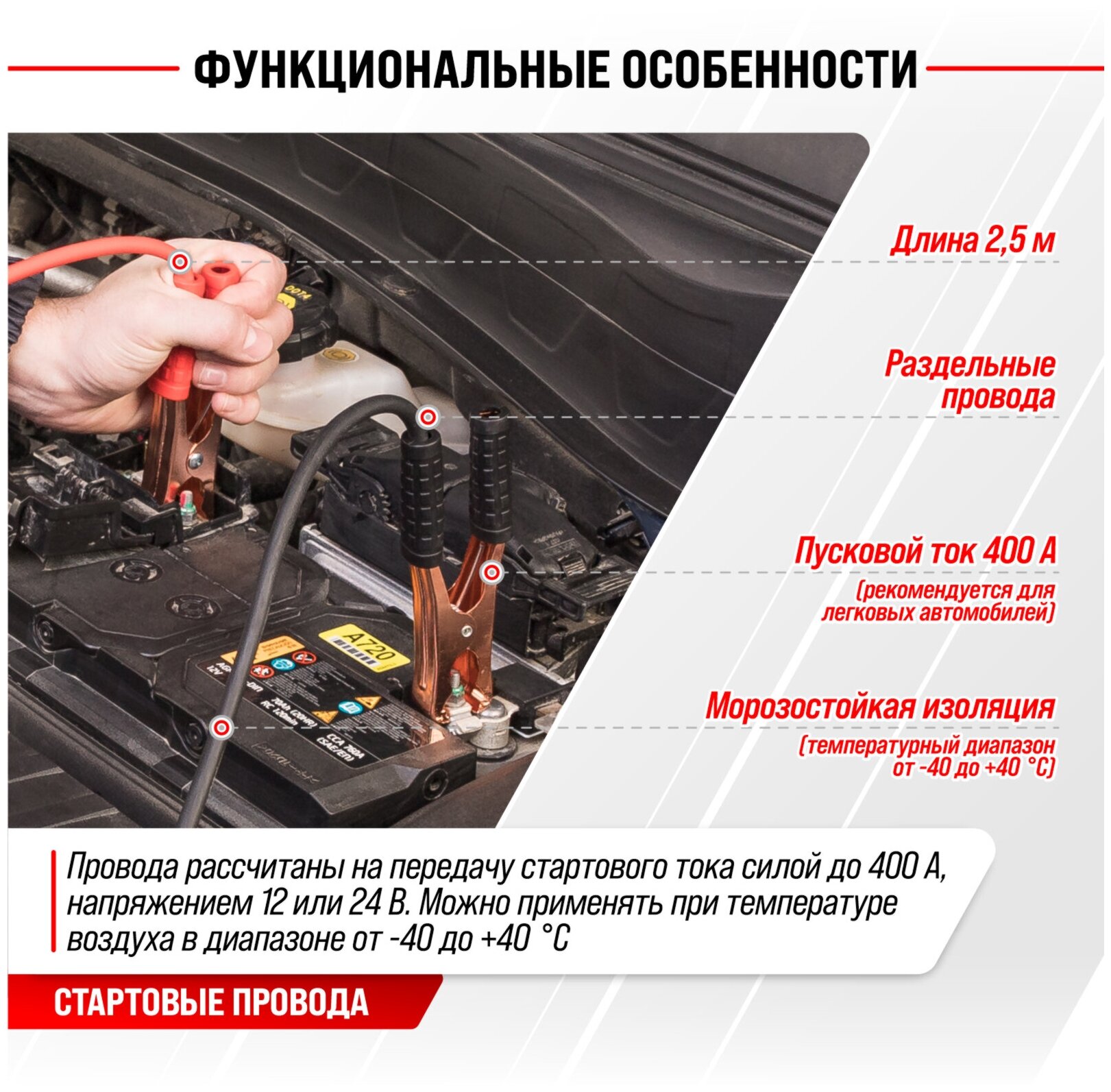 Пусковые провода SKYWAY, 400A, 2,5м, Arctic, S03701008