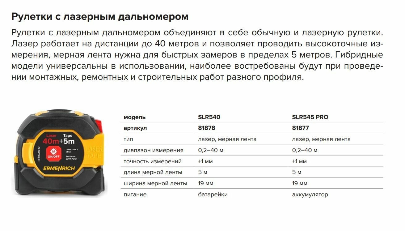 Рулетка с лазерным дальномером Ermenrich Reel SLR540 интересное: