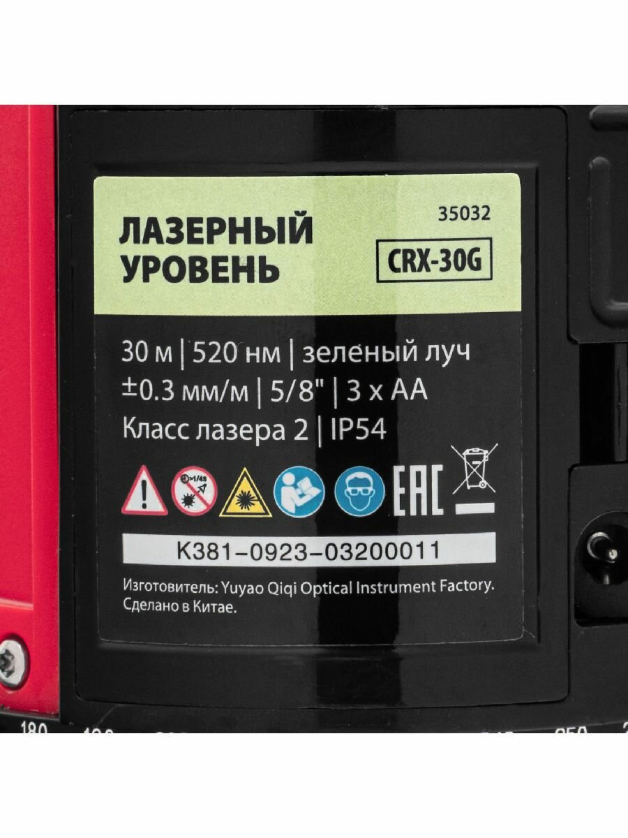 Лазерный уровень CRX-30G, 30 м, зеленый луч, батарейки, резьба 5/8" MTX 35032