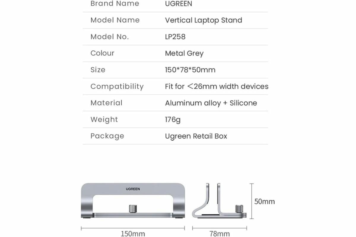 UGREEN Настольная подставка Universal Vertical Aluminum Laptop Stand для ноутбуков 20471 интересное: