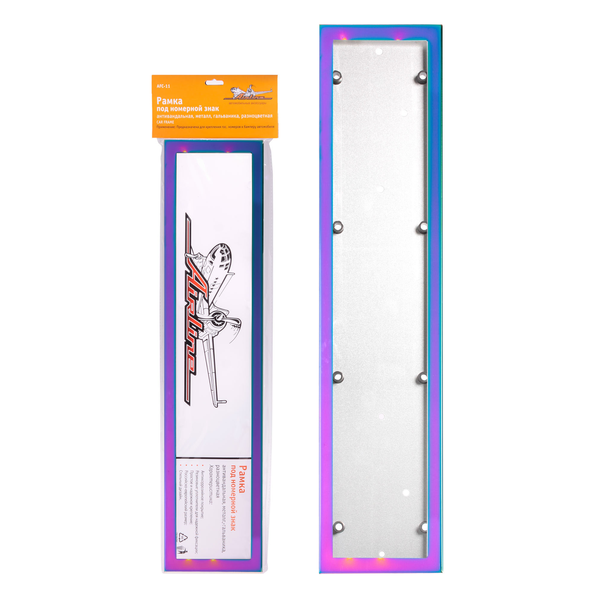 Рамка под номерной знак, антивандальная, металл, гальваника, разноцветная AFC-11 AIRLINE
