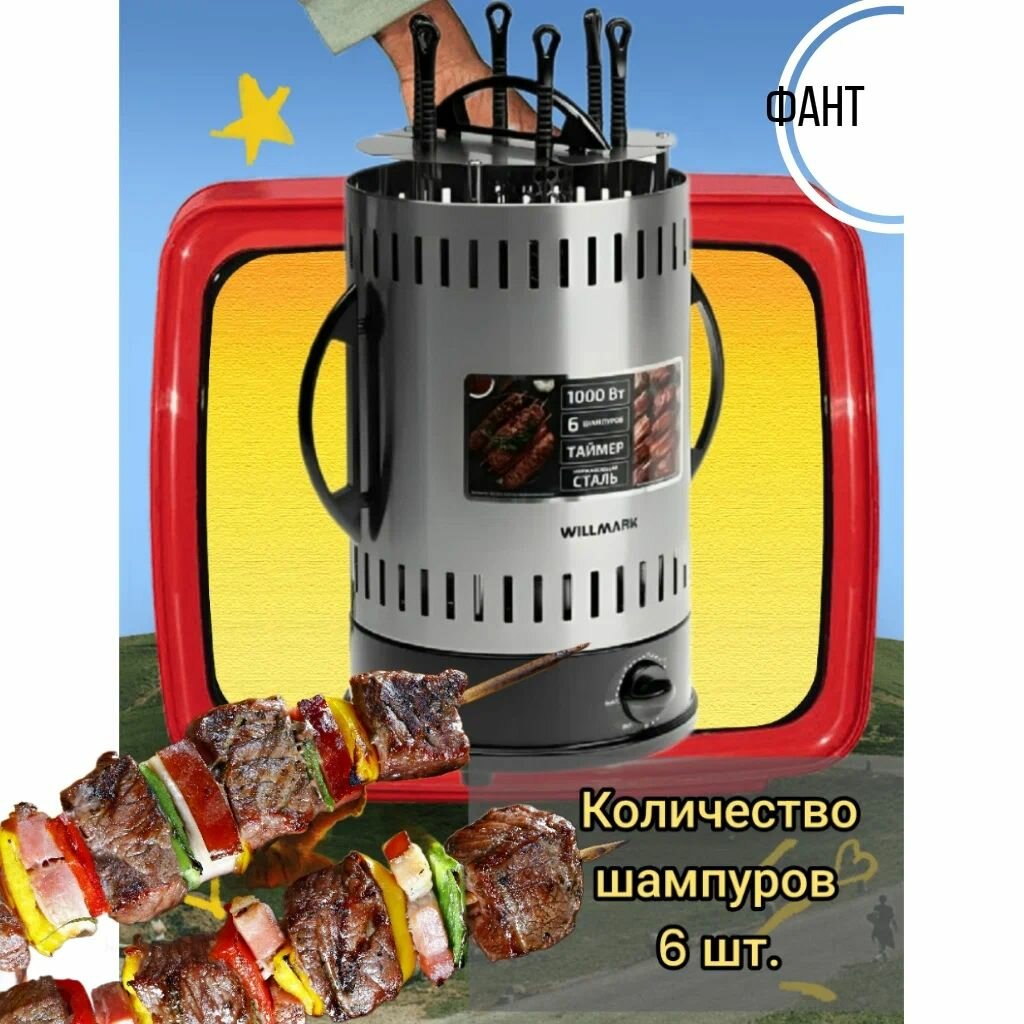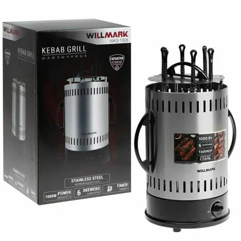 Шашлычница электрическая WILLMARK WKG-1306 (6 шампуров, таймер) интересное: