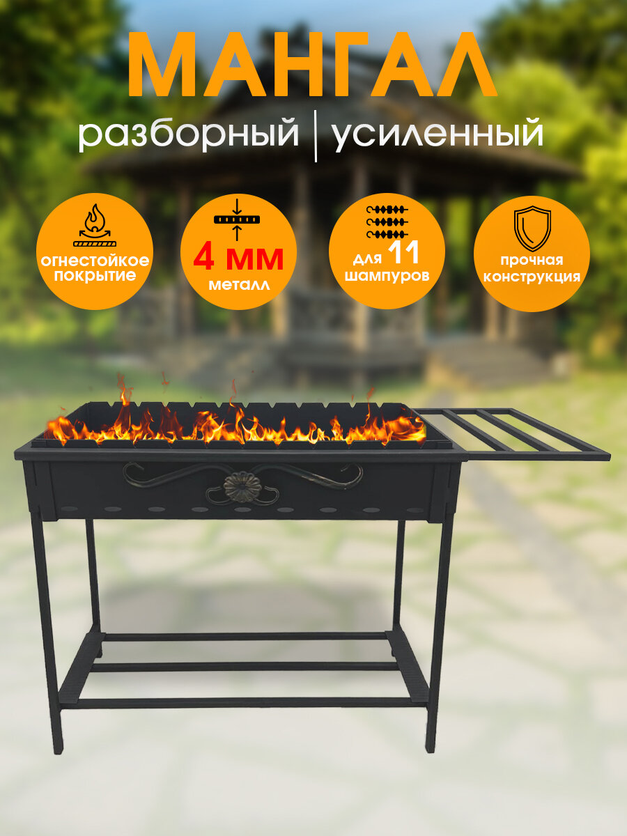 Мангал разборный усиленный 4 мм с дровницей и столиком интересное: