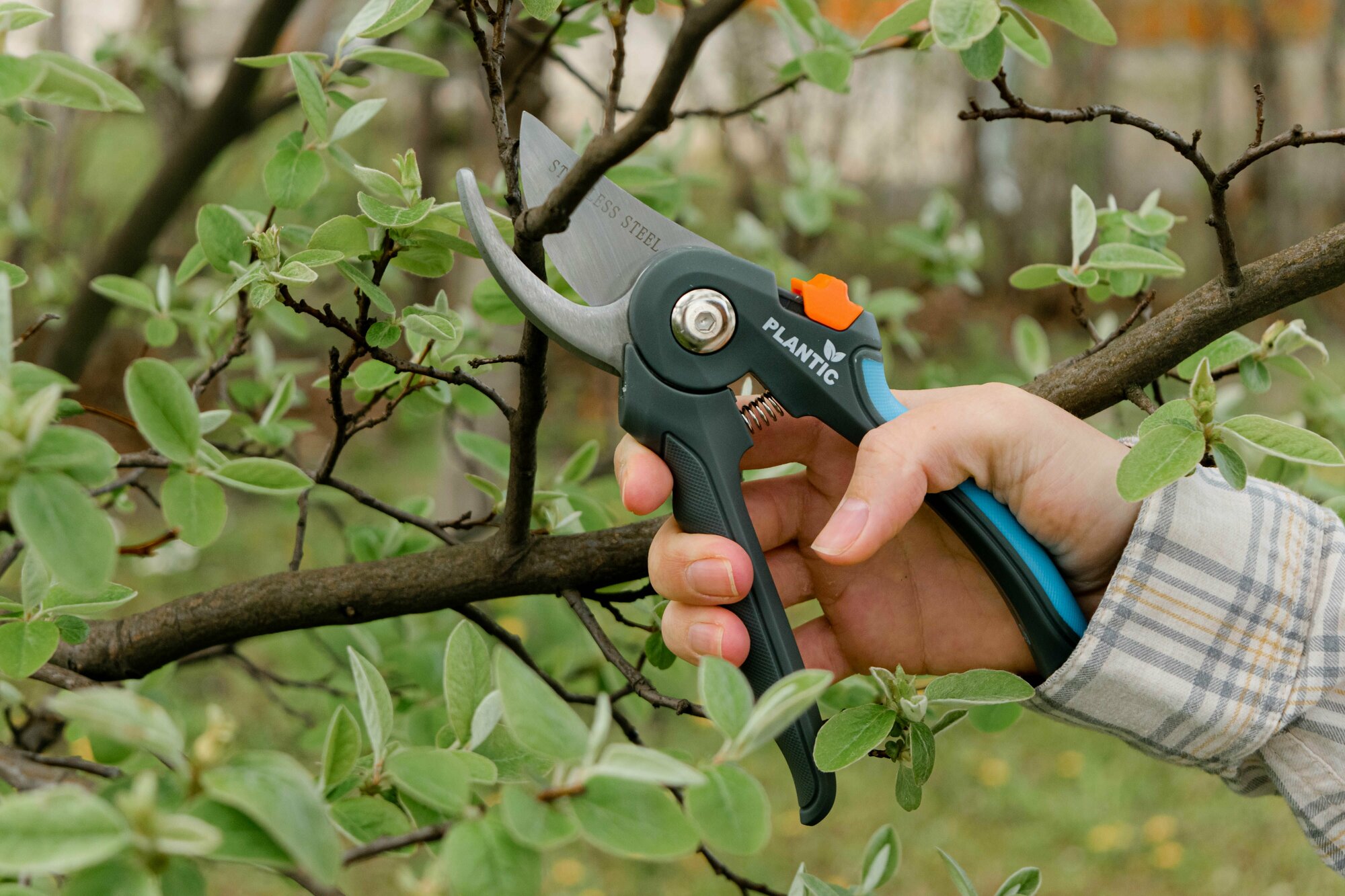 Секатор садовый Plantic Light L63 25263-01, плоскостной, диаметр реза 22 мм., лезвия из нержавеющей стали, регулируемый механизм блокировки