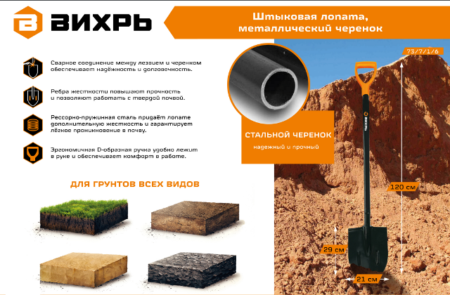 СохранитьЛопата штыковая Вихрь 73/7/1/7 для земляных работ интересное: