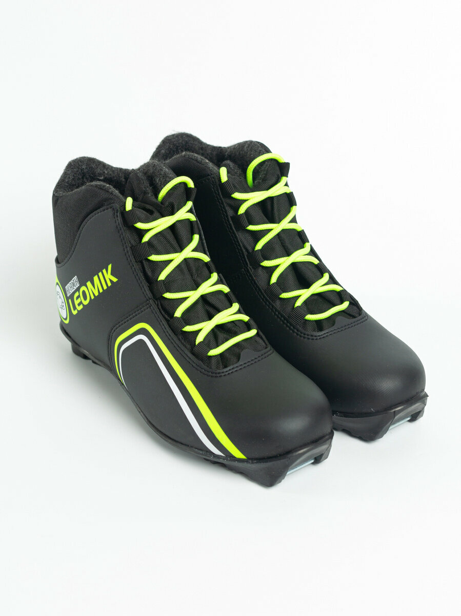 Ботинки лыжные Leomik Health (green) NNN, размер 33, черно-неоновые
