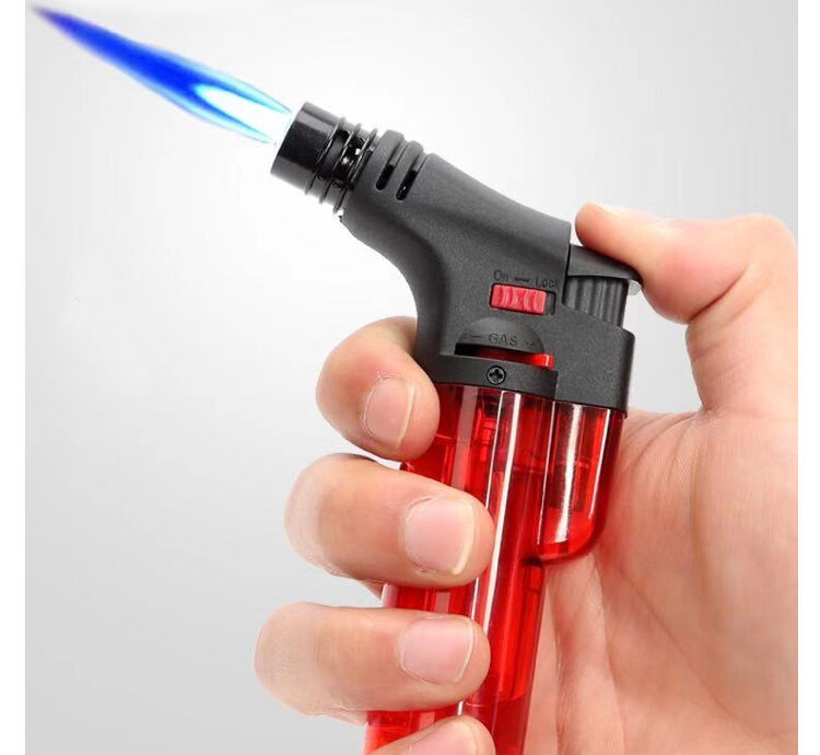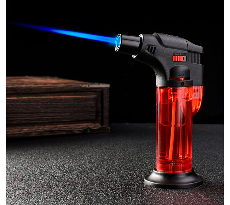 Газовая портативная горелка пьезозажигалка турбо мини прозрачная красная, туристическая горелкка-зажигалка