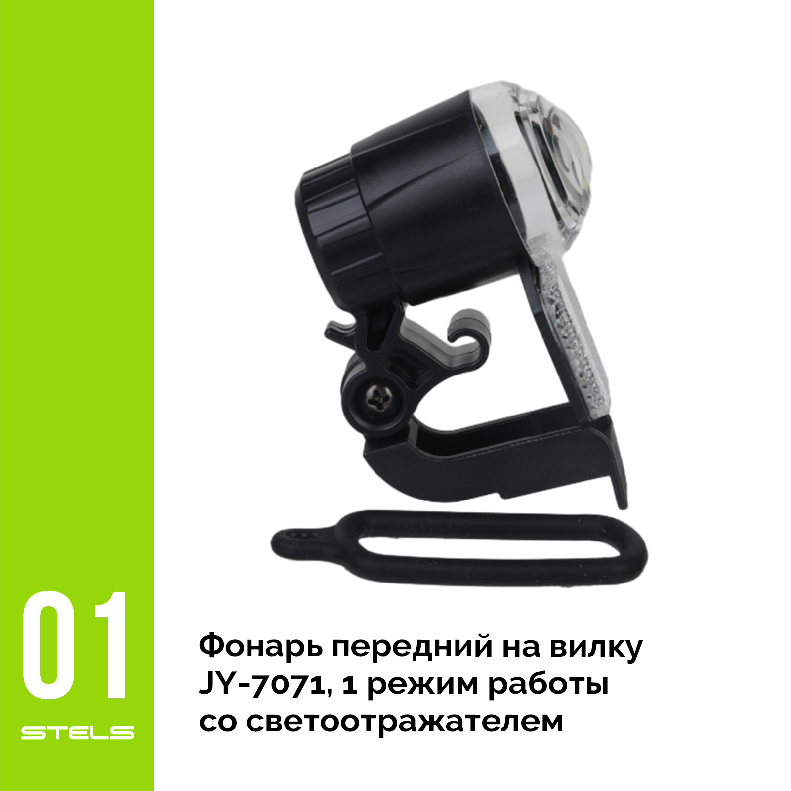 Фонарь передний на вилку JY-7071, 1 режим работы, со светоотражателем VELOSALE (item:030)