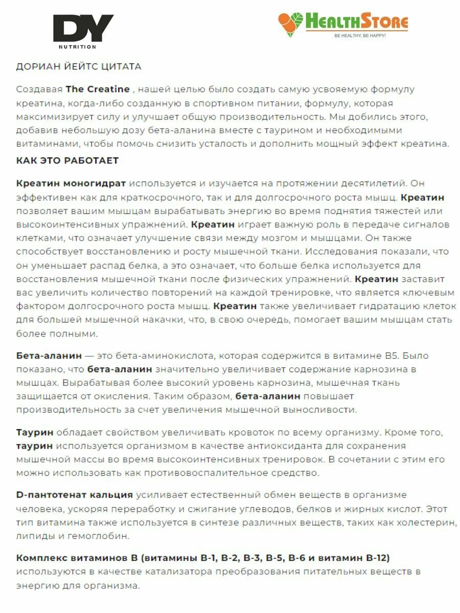 Ниже Вы можете прочитать отзывы на Dorian Yates DY Nutrition The Creatine 316г (персик) креатин моногидрат порошок, креатин малат, ознакомится с подробными характеристиками, посмотреть интересные обзоры и фотографии на Dorian Yates DY Nutrition The Creatine 316г (персик) креатин моногидрат порошок, креатин малат.