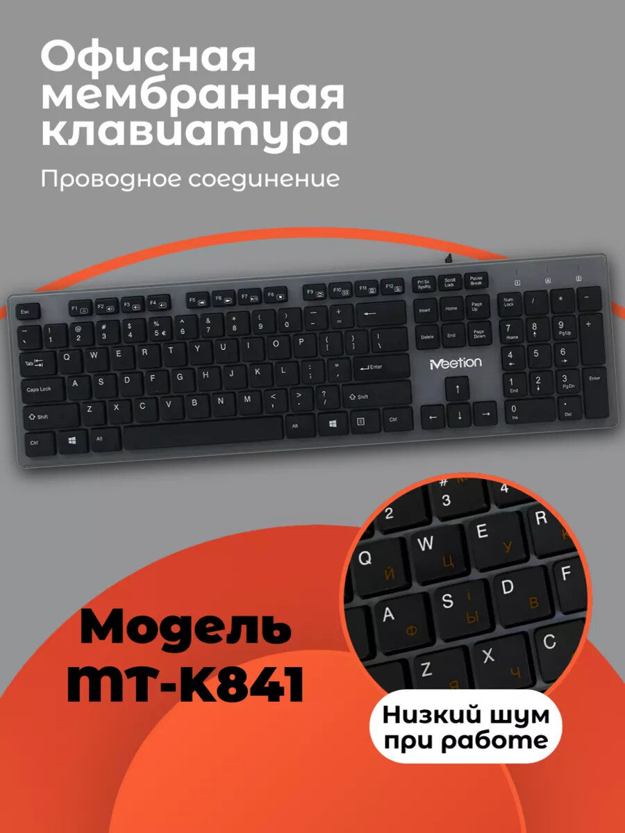Беспроводная клавиатура MeeTion, 2,4 ГГц, 10 м, мембранная, латиница/кириллица, черная {MT-WK841}