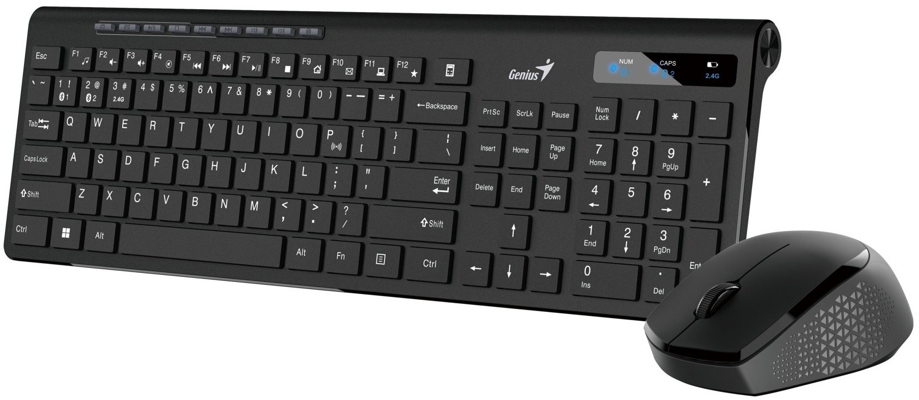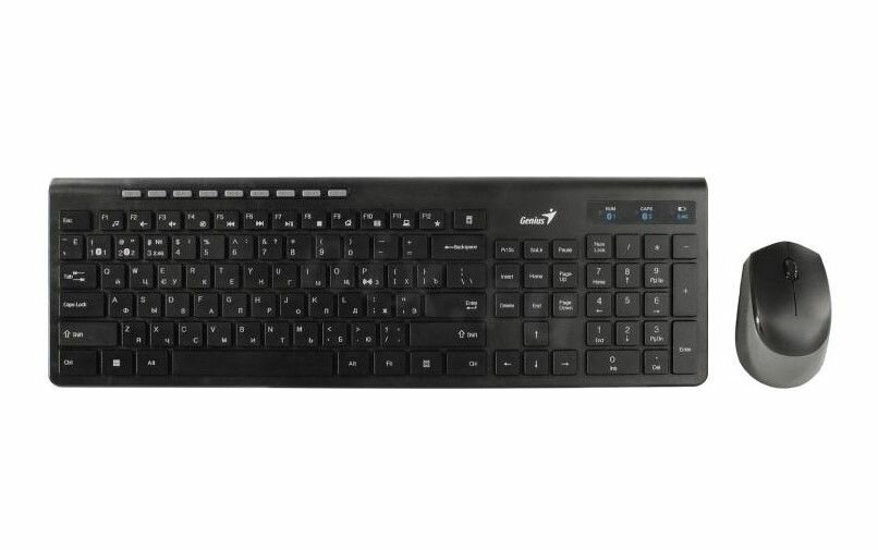 Комплект беспроводной Genius Smart KM-8230 BLACK, клавиатура+мышь, USB, 1 мини-ресивер на оба устройства. Клавиатура: 104 клавиши кнопка SmartGenius,