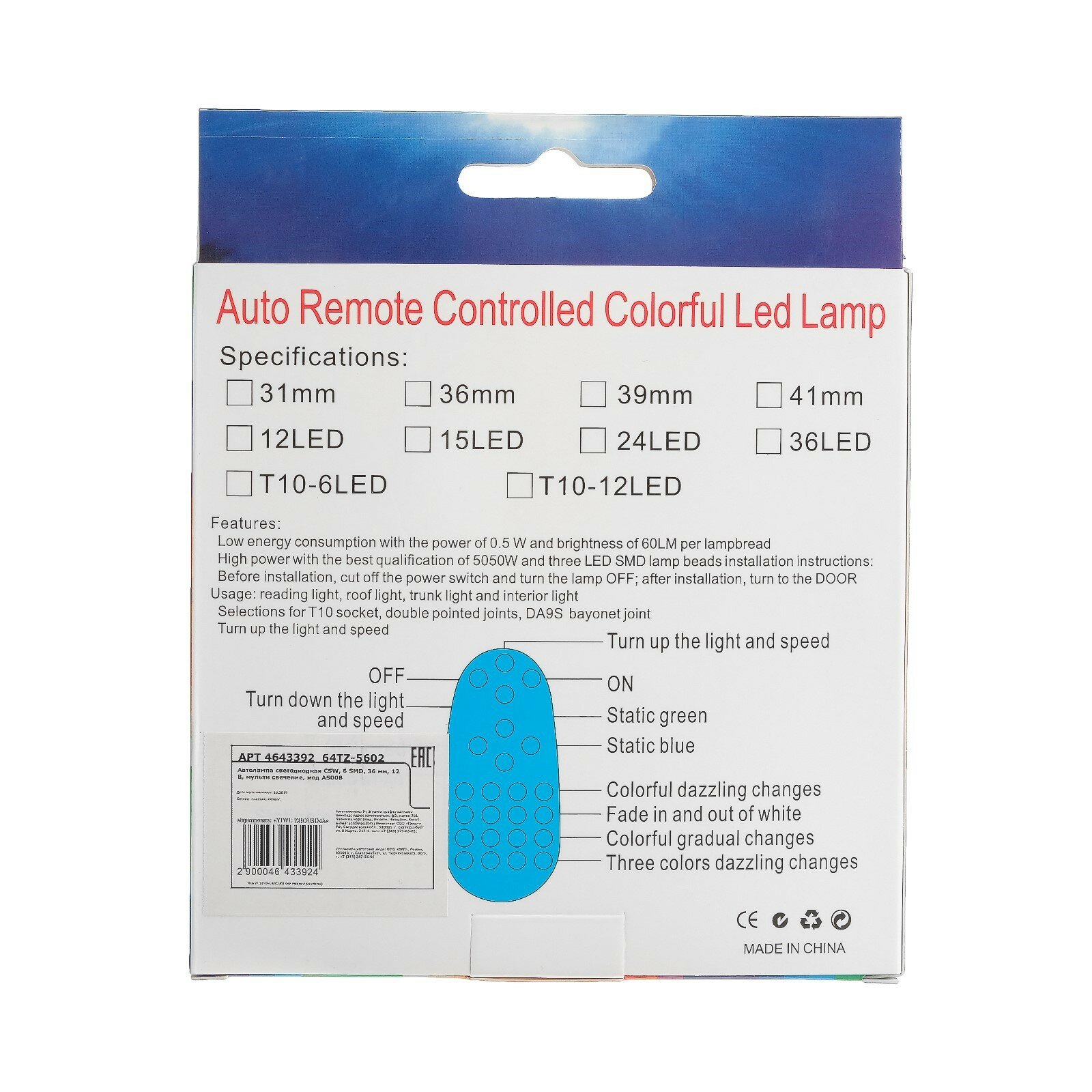 Автолампа светодиодная C5W, 6 SMD, 36 мм, 12 В, мульти свечение, пульт, набор 2 шт интересное: