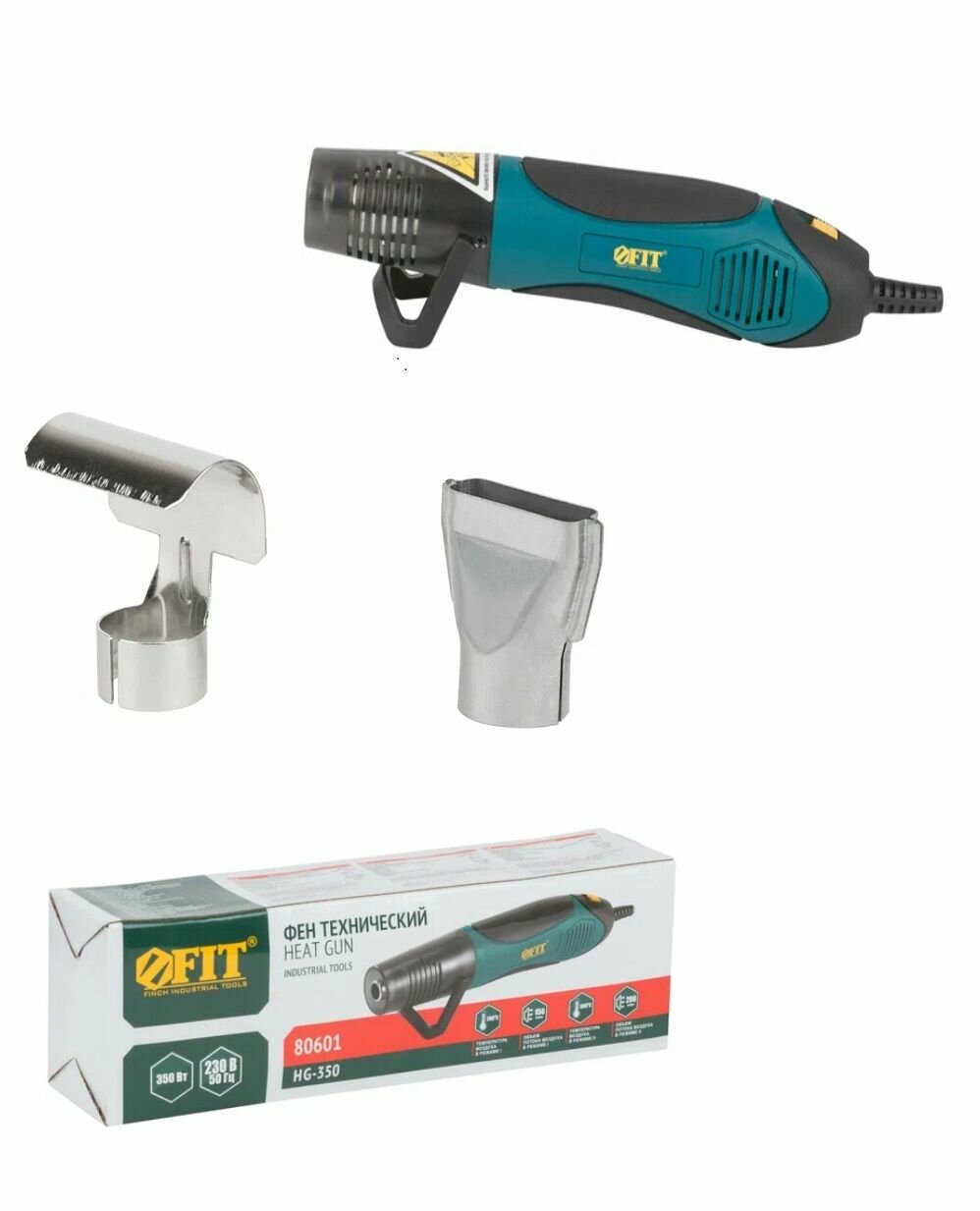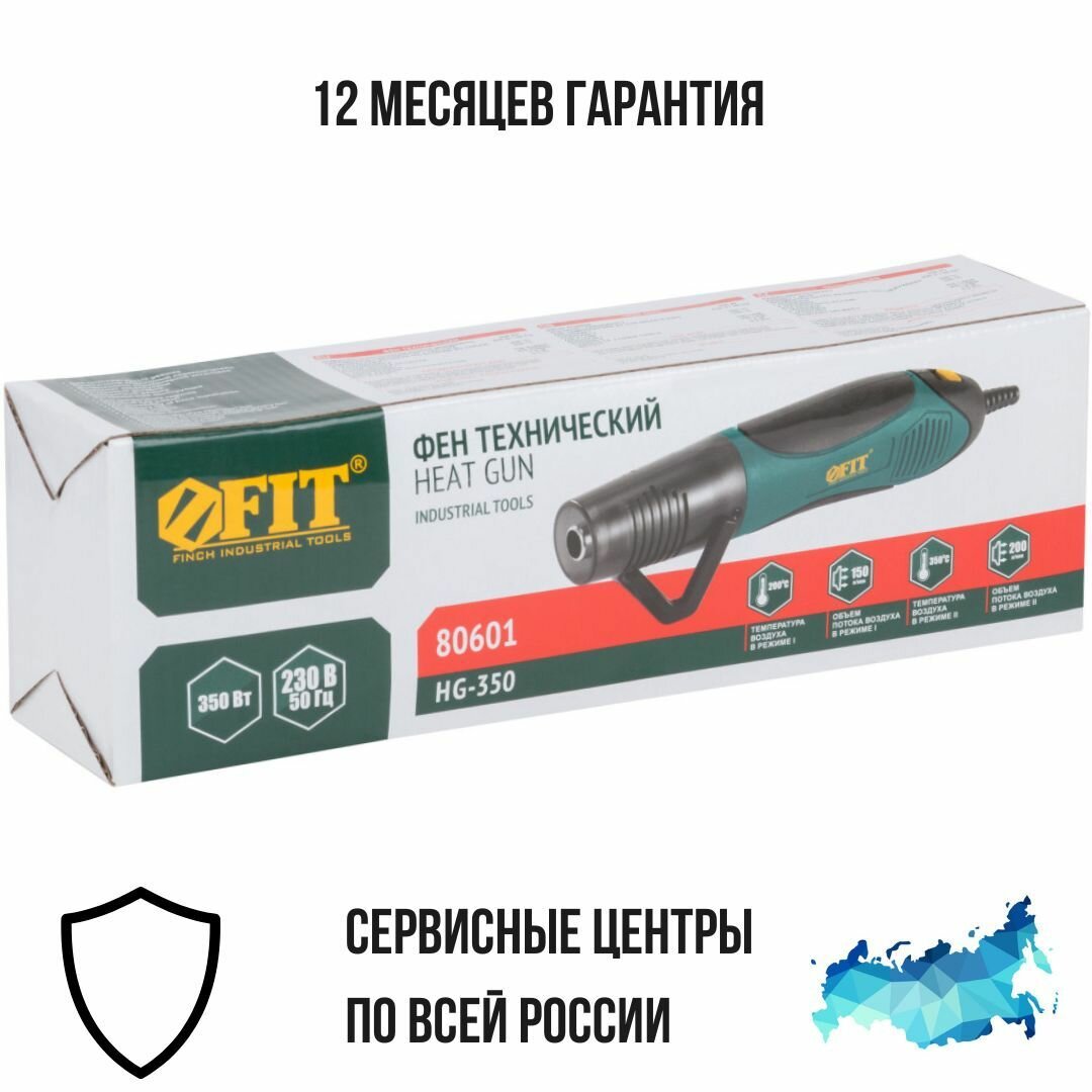 Фен строительный 350Вт, 2 режима, коробка FIT HG-350 80601