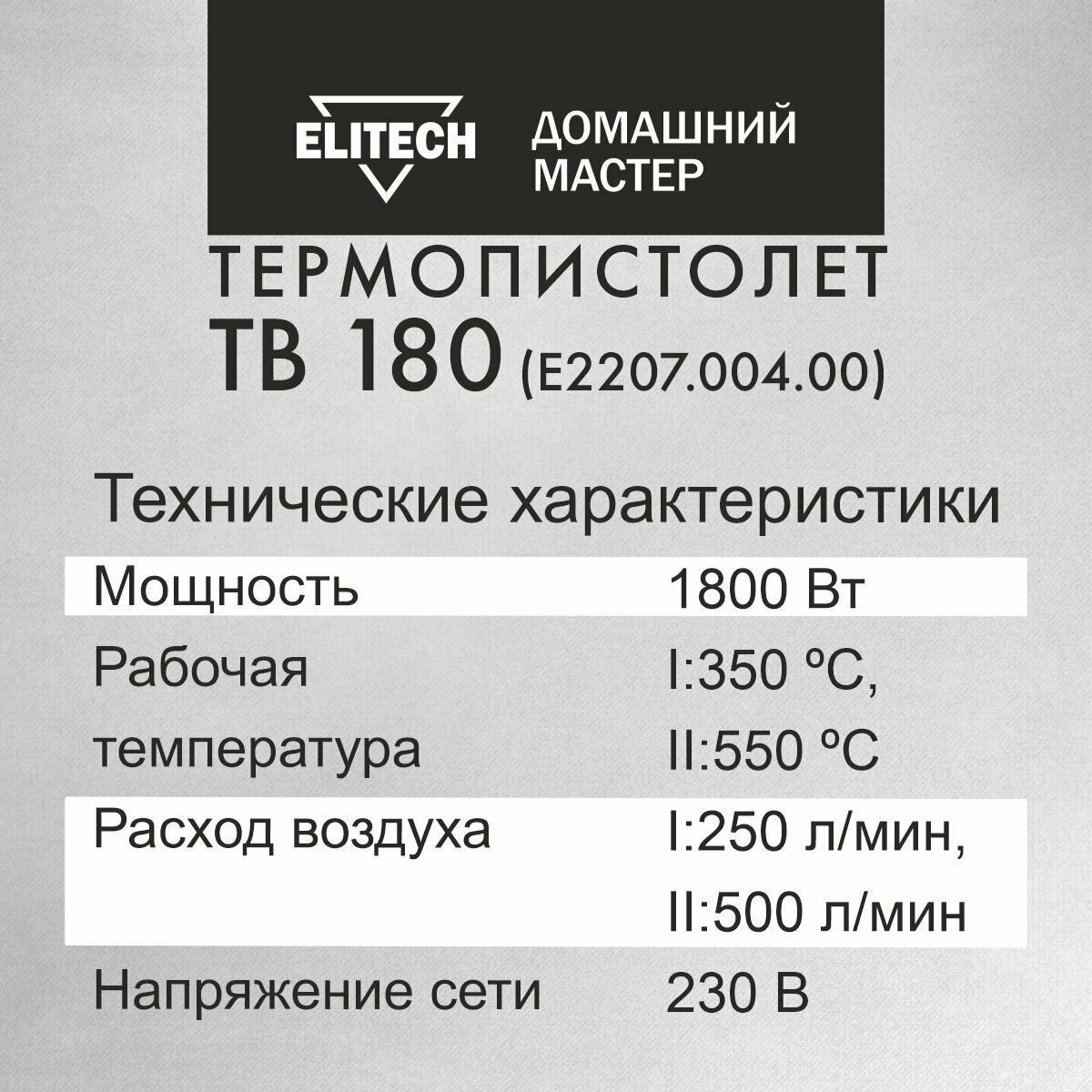 Пистолет горячего воздуха ТВ 180 ELITECH ДМ, E2207.004.00