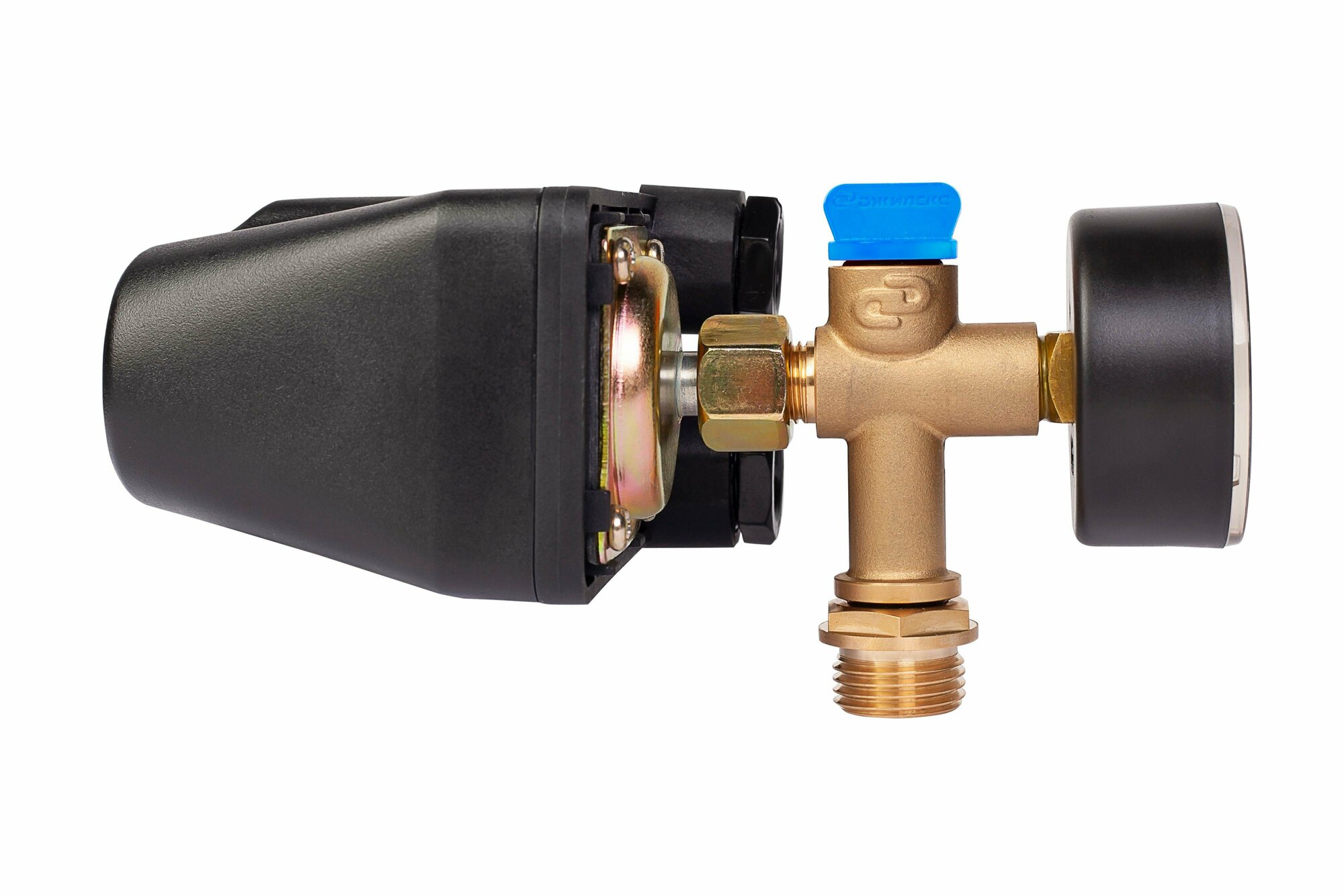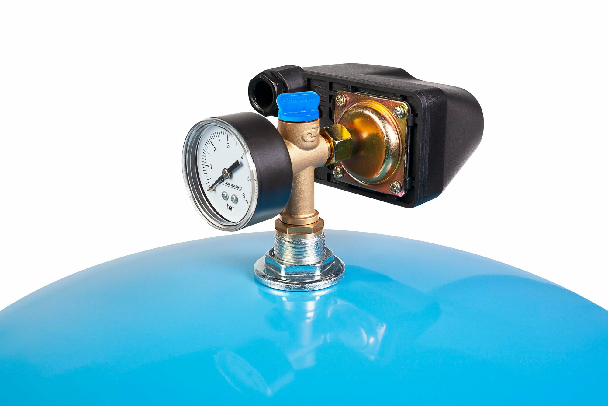 | Минусы: | Готовый комплект для контроля давления в гидробаке, удобно для установки на бак с проходной мембраной. |