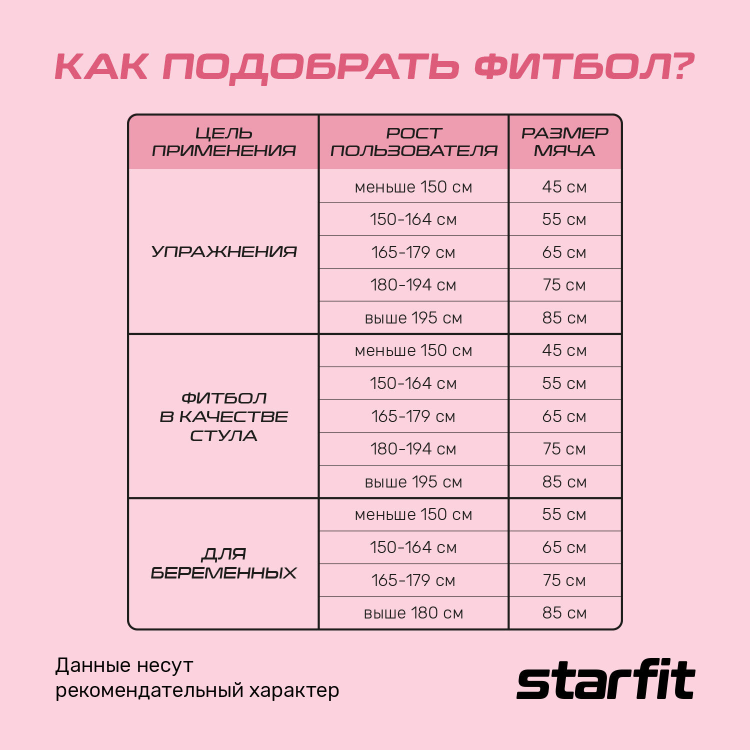 Фитбол STARFIT GB-109 65 см, 1000 гр, антивзрыв, с ручным насосом, розовый