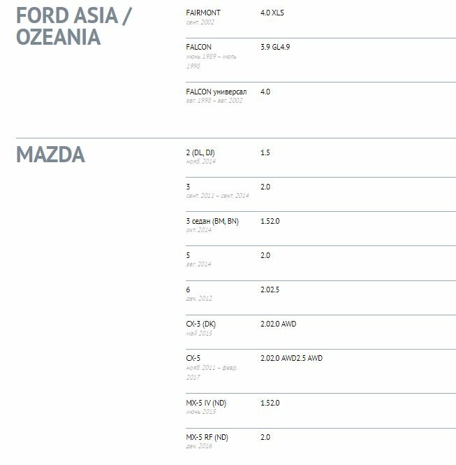 | Модель автомобиля | Honda Pilot / Mazda 2 / Mazda 3 / Mazda 6 / Mazda Atenza / Mazda Axela / Mazda CX-3 / Mazda CX-30 / Mazda CX-5 / Mazda Demio / Mazda MX-5 / Mazda Premacy / Mazda Roadster / Nissan Lafesta / Saturn Sky / 2 / 3 / 6 / CX-30 / CX-5 / Mazda6 |