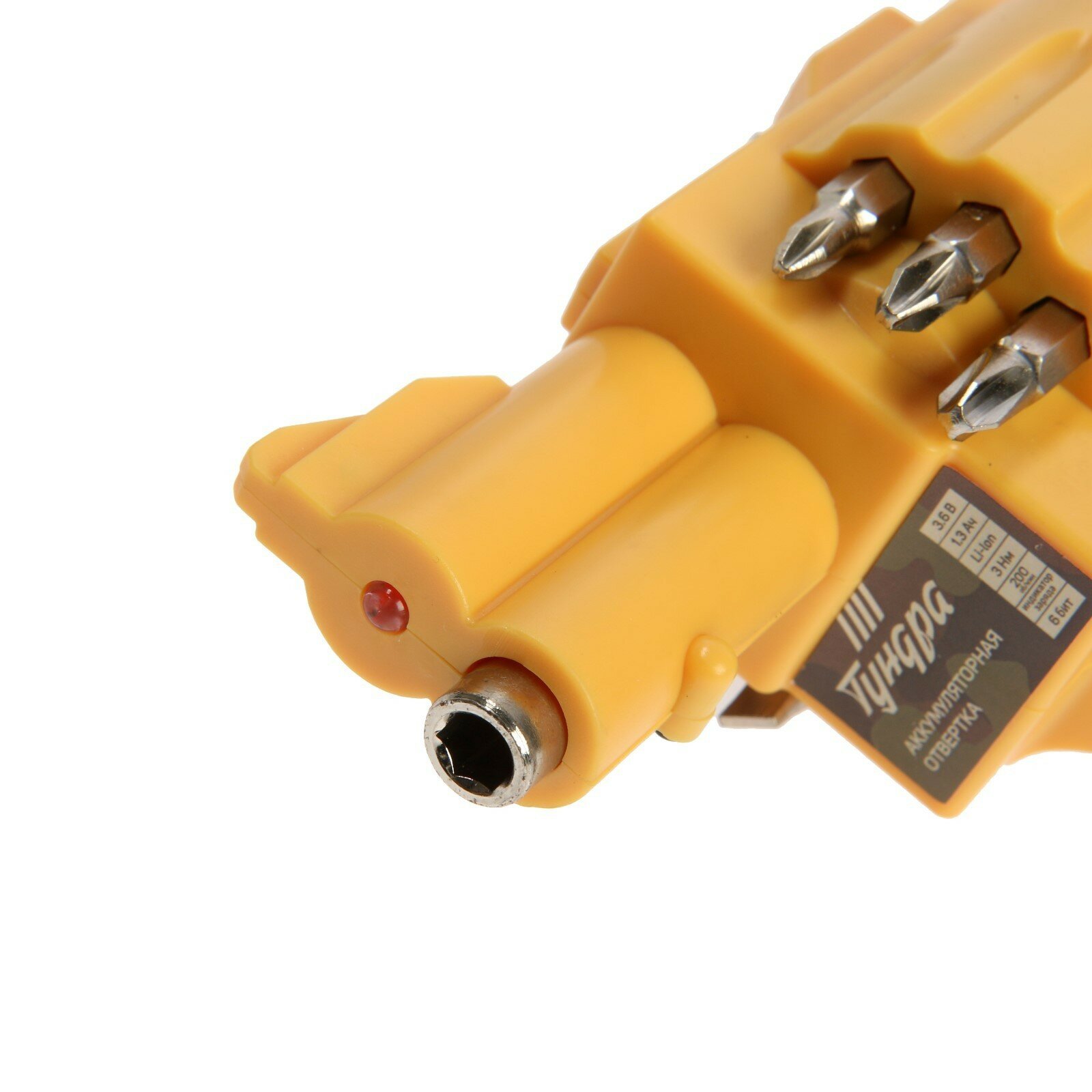Аккумуляторная отвертка тундра, 3.6 В, 1.3 Ач, Li-lon, 3 Нм, 200 об/мин, индикатор заряда