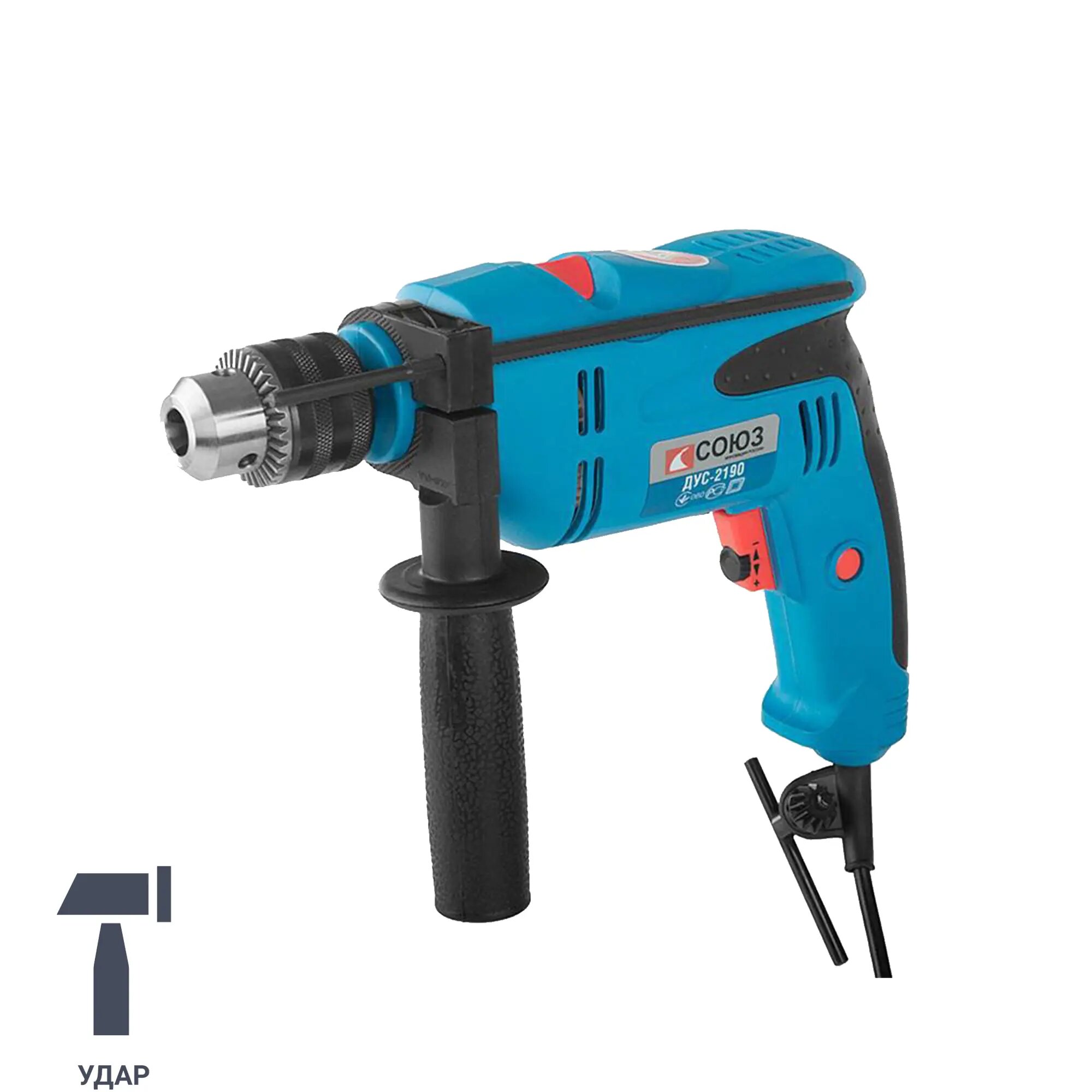 Купить Ударная дрель СОЮЗ ДУС-2190, 900 Вт, без аккумулятора черный..