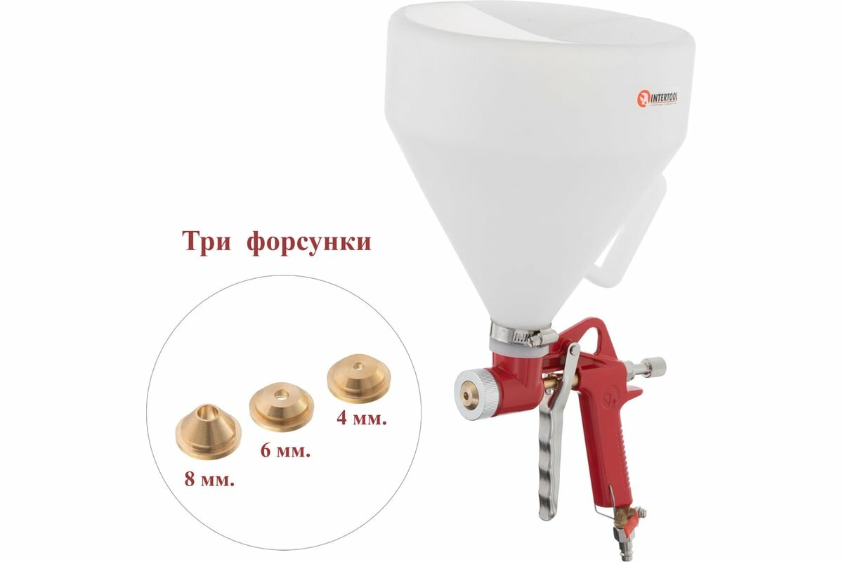 Распылитель штукатурный пневматический, три форсунки 4;6;8мм, В/Б пластмассовый, 7000мл, 3-6 атм INTERTOOL PT-0402