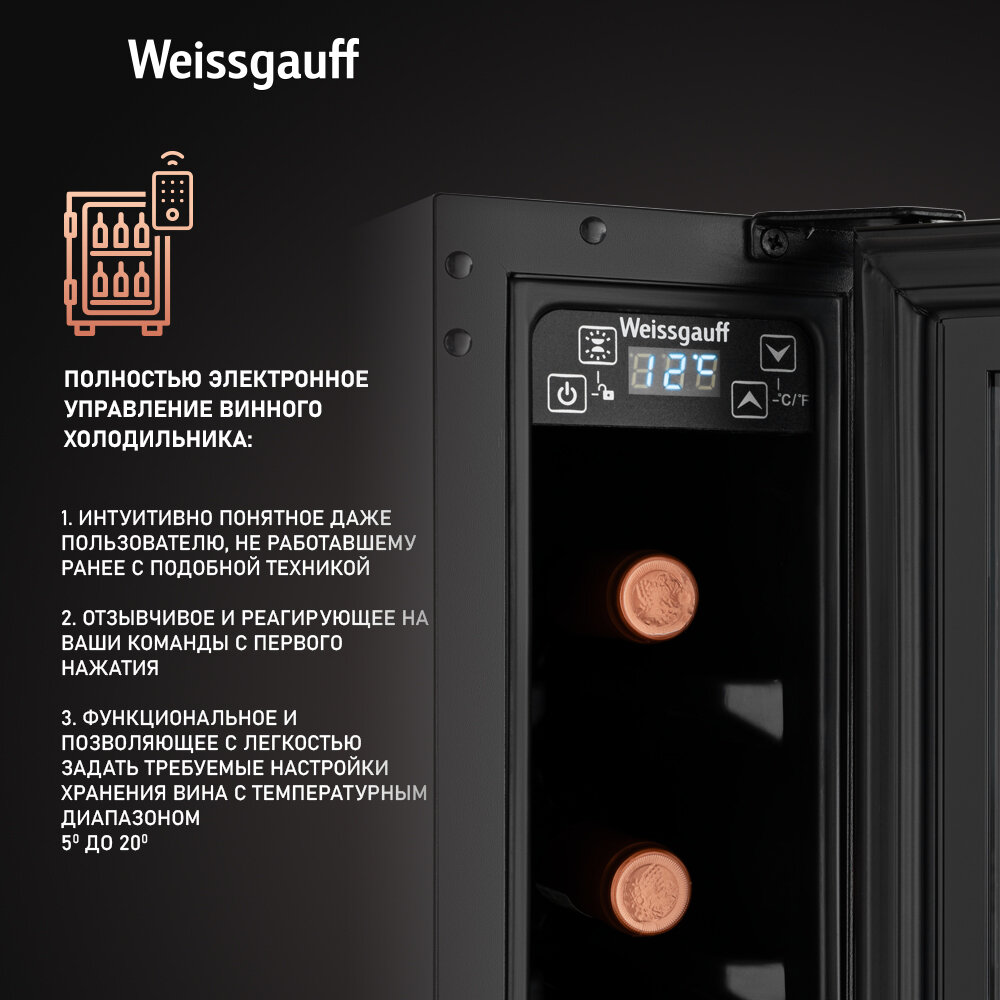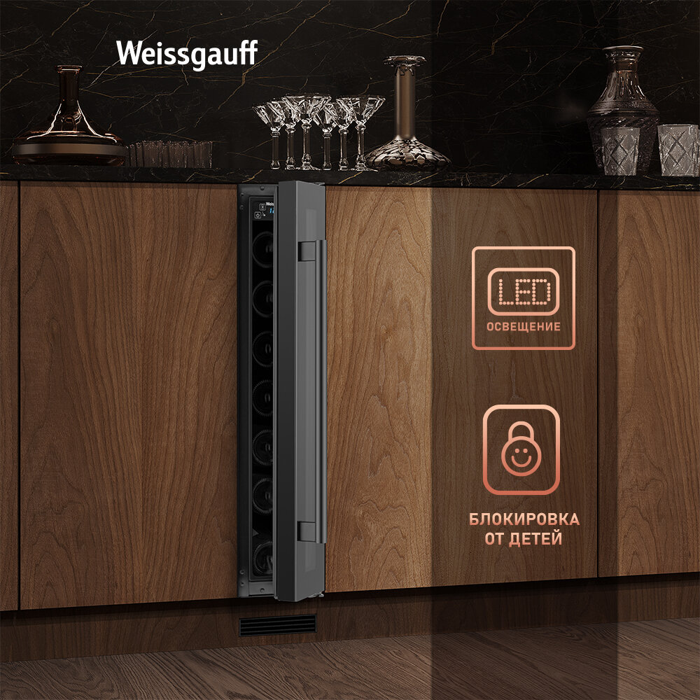 Встраиваемый винный холодильник Weissgauff WWC-7 B компрессорный холодильник для вина, 7 бутылок, 3 года гарантии интересное: