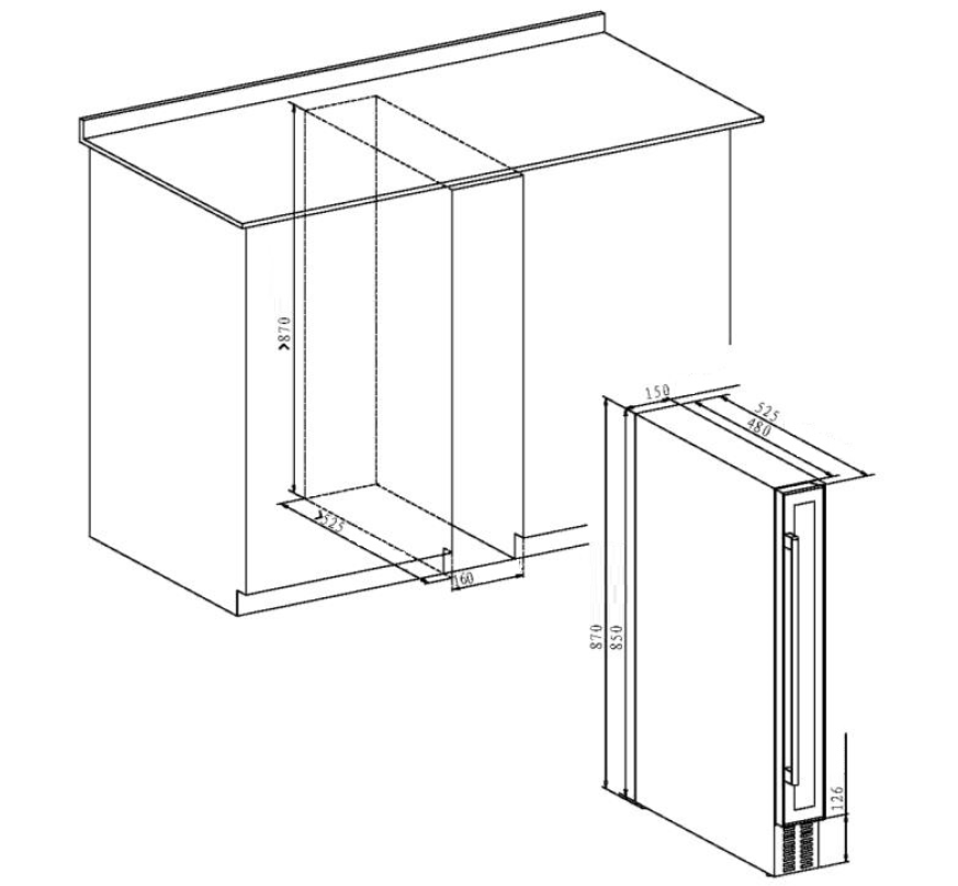 | Дополнительная информация | встраиваемая установка, внутреннее освещение камеры, диапазон температур 5-20°С |