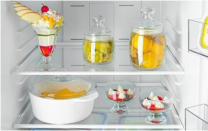 морозилка слека маловата, полки под подонами из стекла |