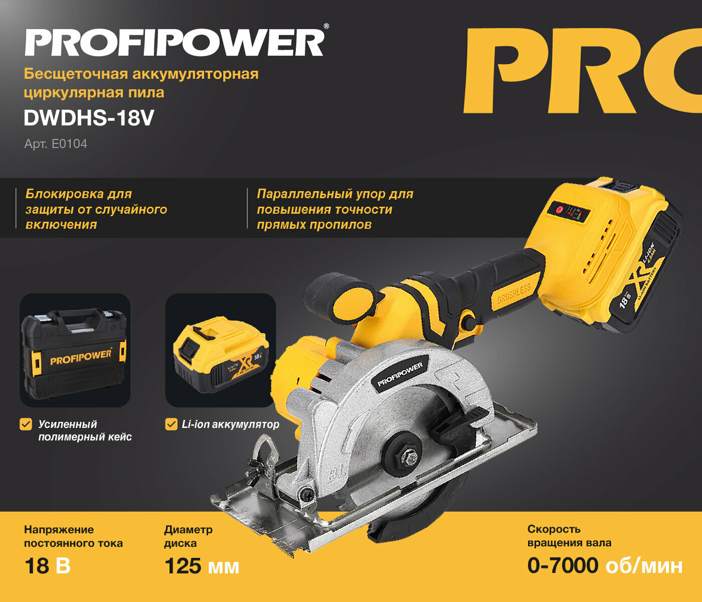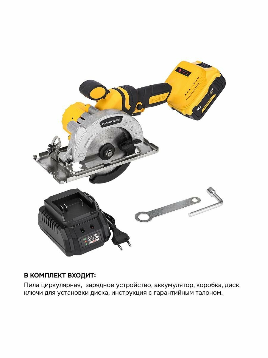 ProfiPower Аккумуляторная пила циркулярная бесщеточная ProfiPower DHS-18V (Li-ion-1шт, 4.0Ач,125мм, интересное: