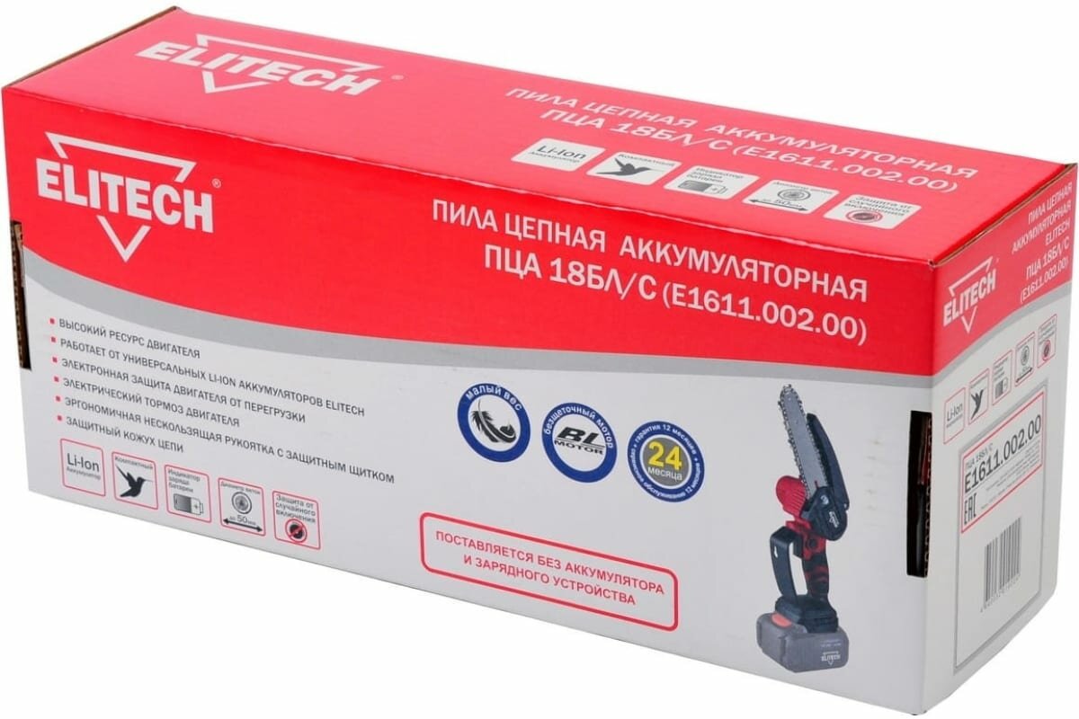 Цепная пила Elitech ПЦА 18БЛ/С (E1611.002.00), аккумуляторная, без АКБ, без ЗУ [200561]