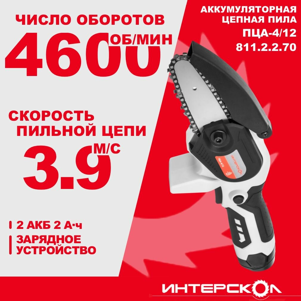 Пила цепная Интерскол ПЦА-4/12 811.2.2.70 Li-ion 2 аккум., 2.0 Ач З/У интересное: