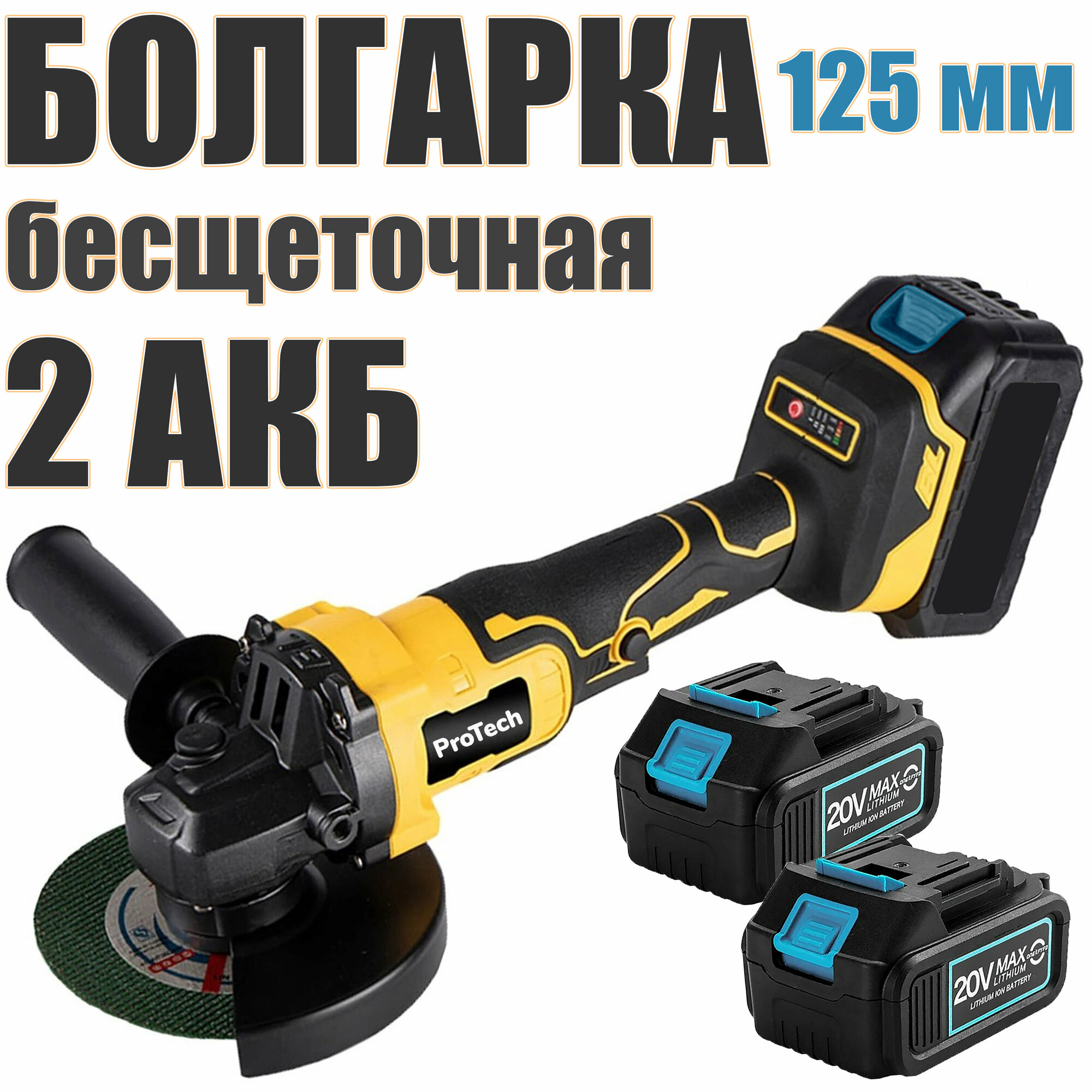 Аккумуляторная бесщеточная УШМ (болгарка) ProTech 10000/125 мм c АКБ-2шт. 20V 4 Ah Li-ion и зарядкой, адаптирован к АКБ Makita LXT интересное: