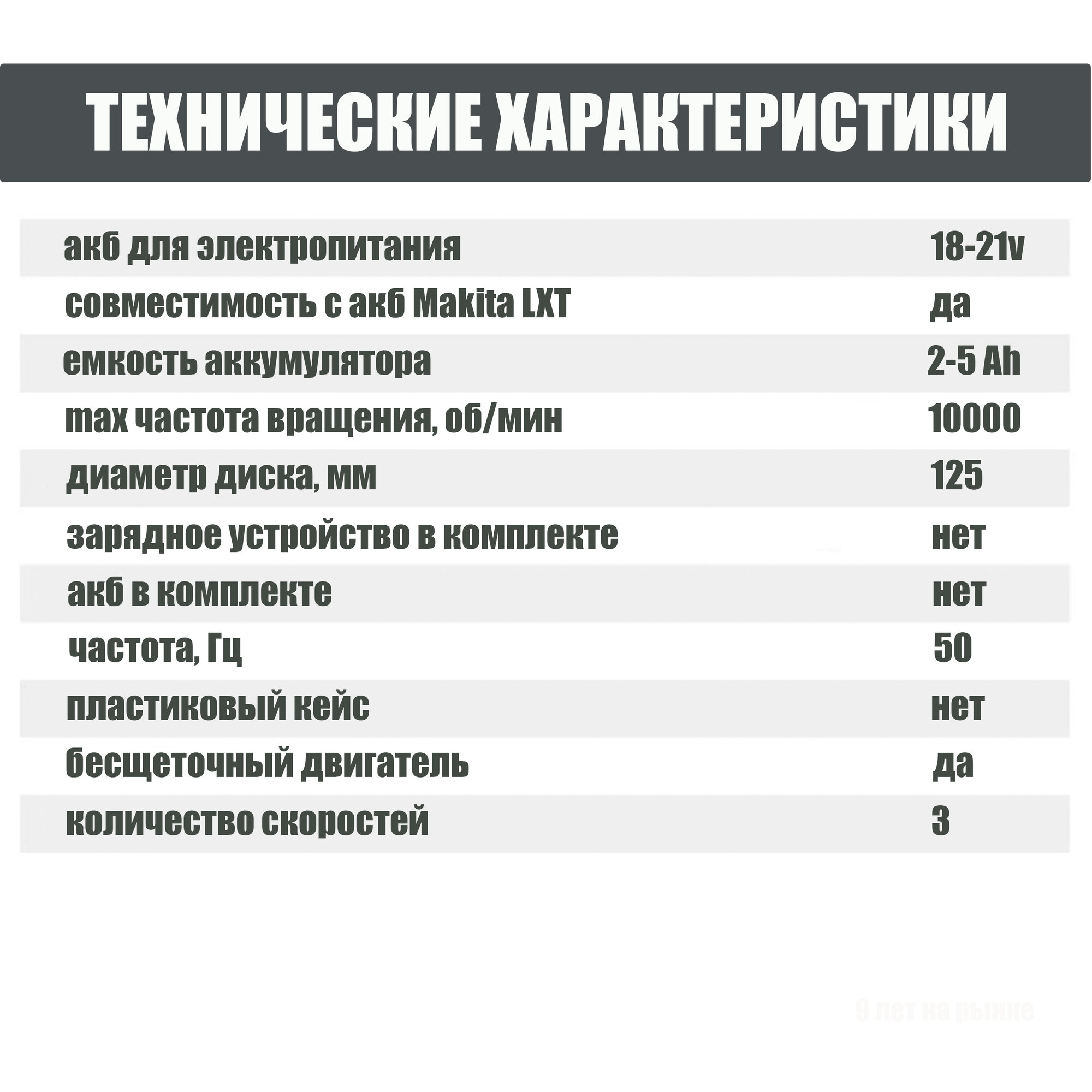 Аккумуляторная УШМ (болгарка) ProTech 10000/125 мм без АКБ, адаптирована к АКБ Макита LXT интересное:
