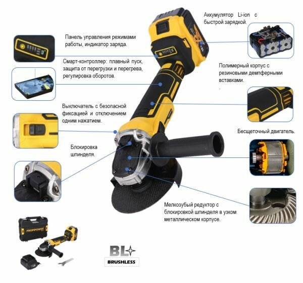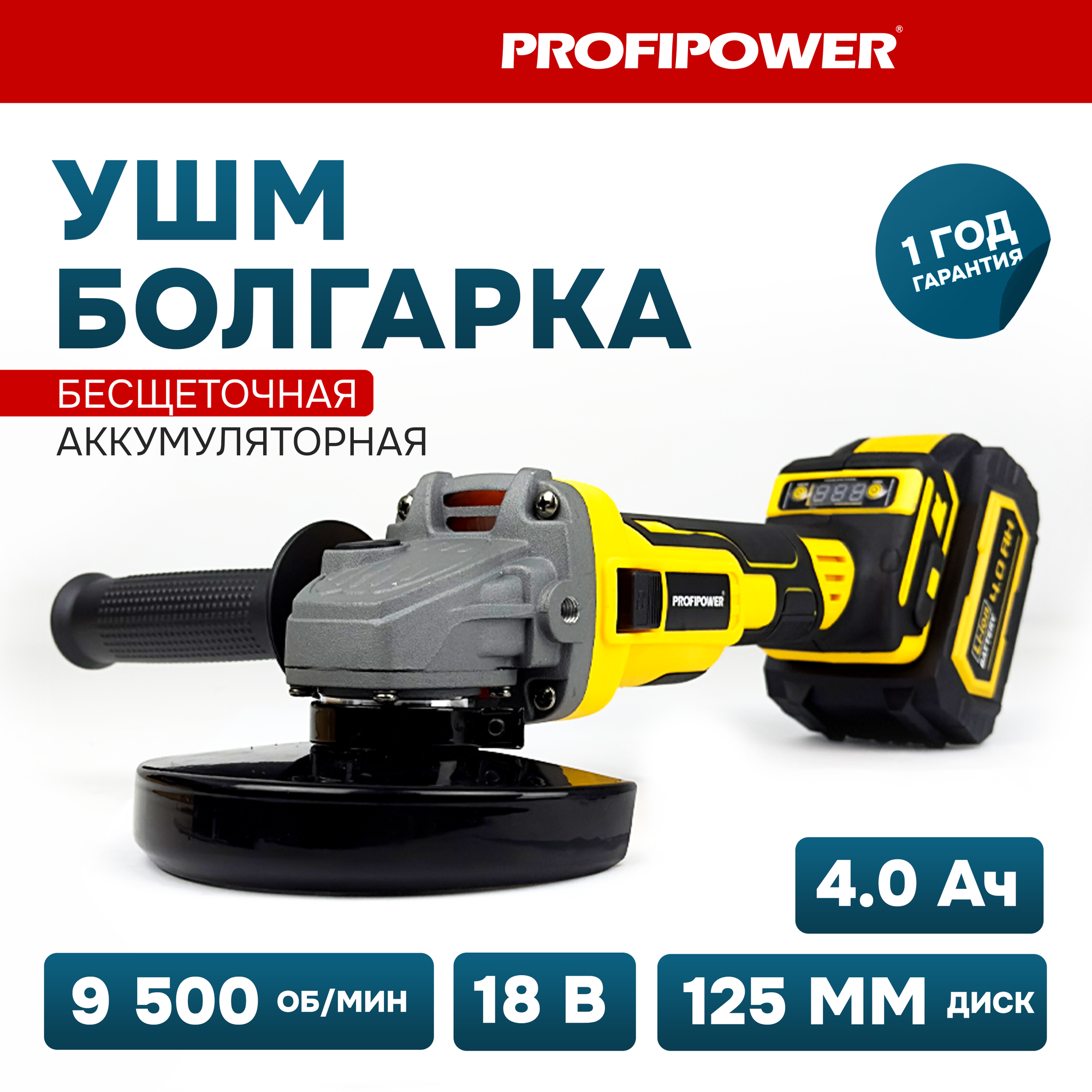 УШМ аккумуляторная Profipower DWDGA-18V, 18В, 125мм, 4Ач интересное: