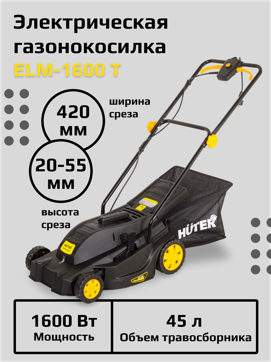 Электрическая газонокосилка Huter ELM-1600T, 1600 Вт, 42 см