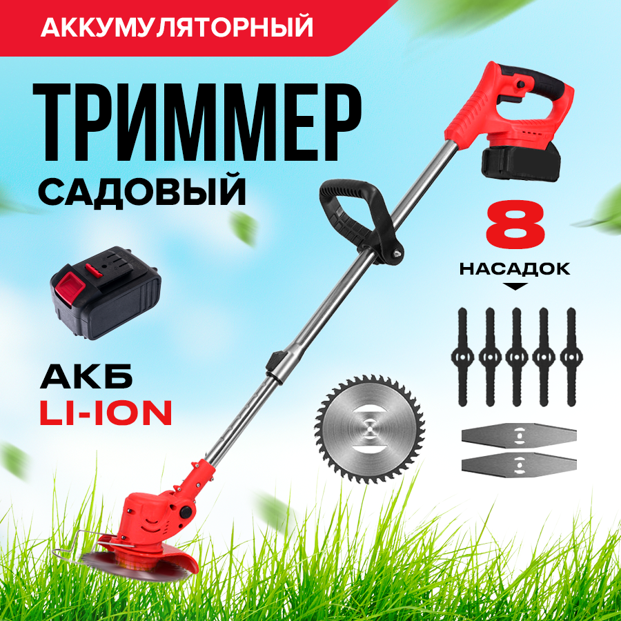 Аккумуляторный триммер для травы Otwen с насадками интересное: