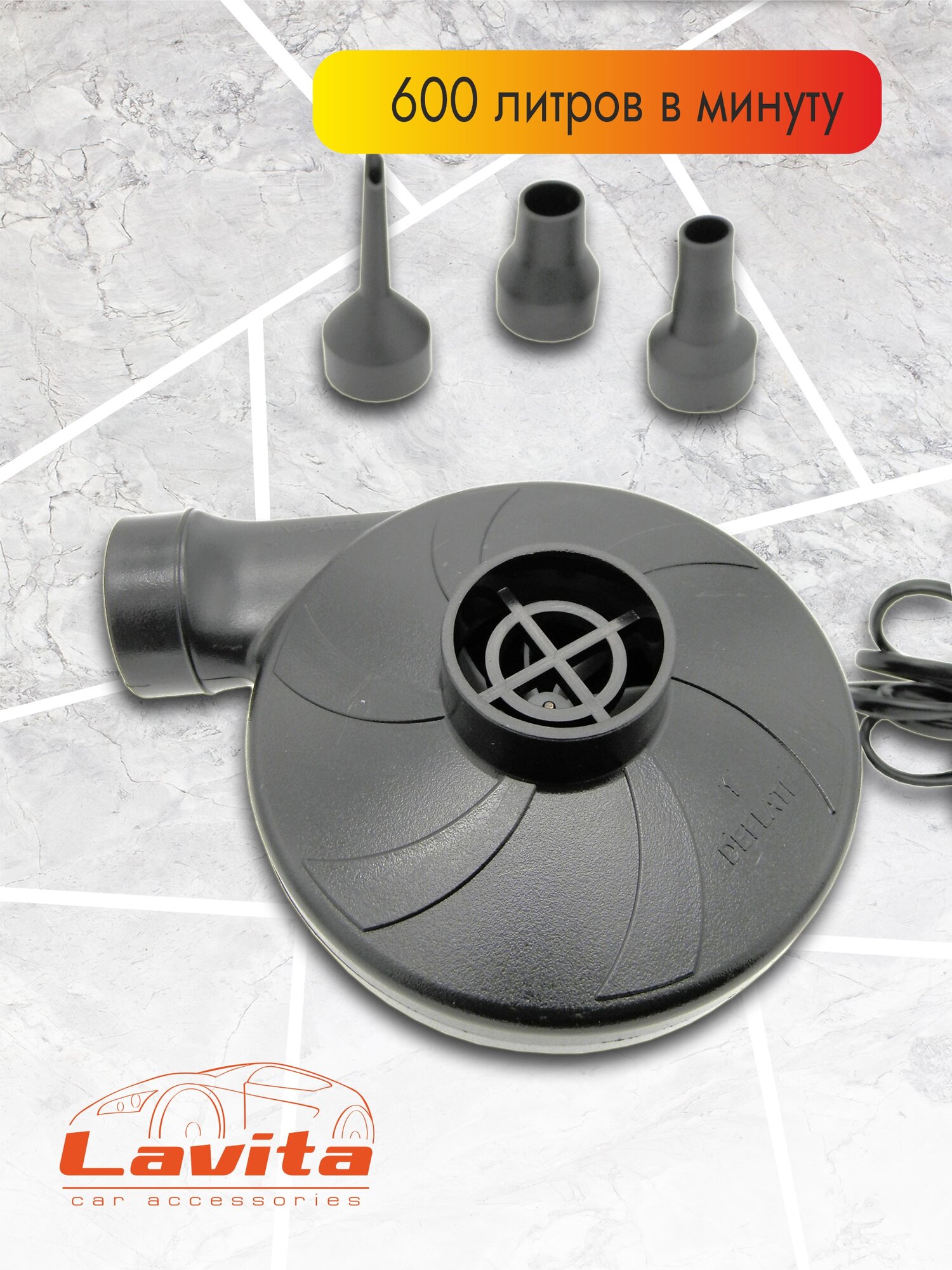 Компрессор Lavita LA-191059 12V насос для резиновых лодок и матрасов, 3 насадки