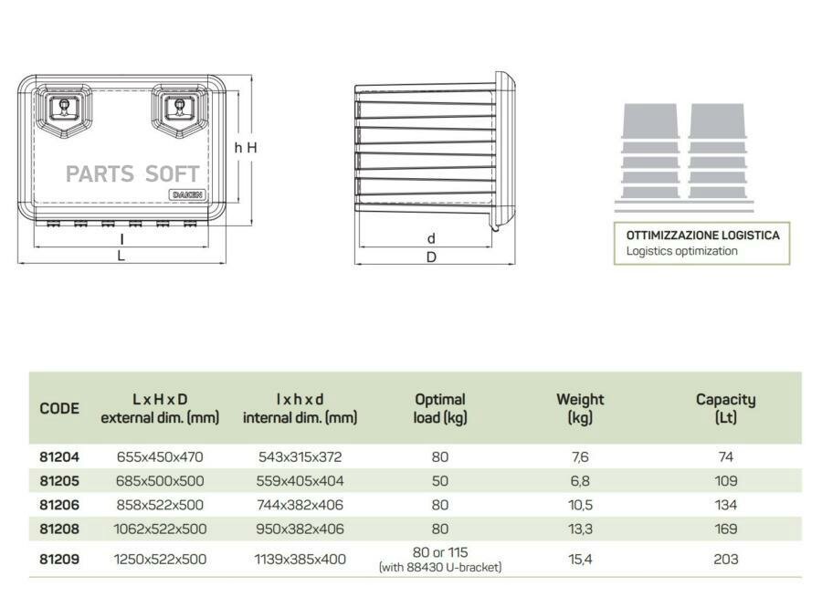 81209001 Ящик инструментальный пластиковый серия ARKA 1250, 1250х524х500 (203л) DAKEN интересное: