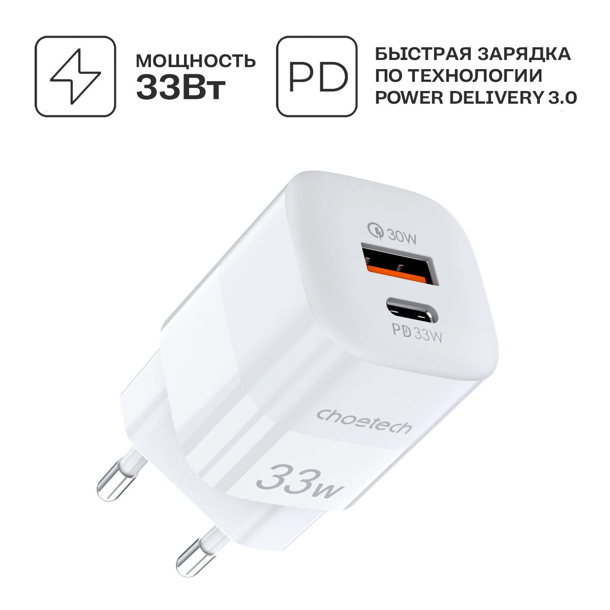 Сетевое зарядное устройство Choetech PD5006 33Вт (USB-С + USB-A) PD/PPS, цвет белый интересное: