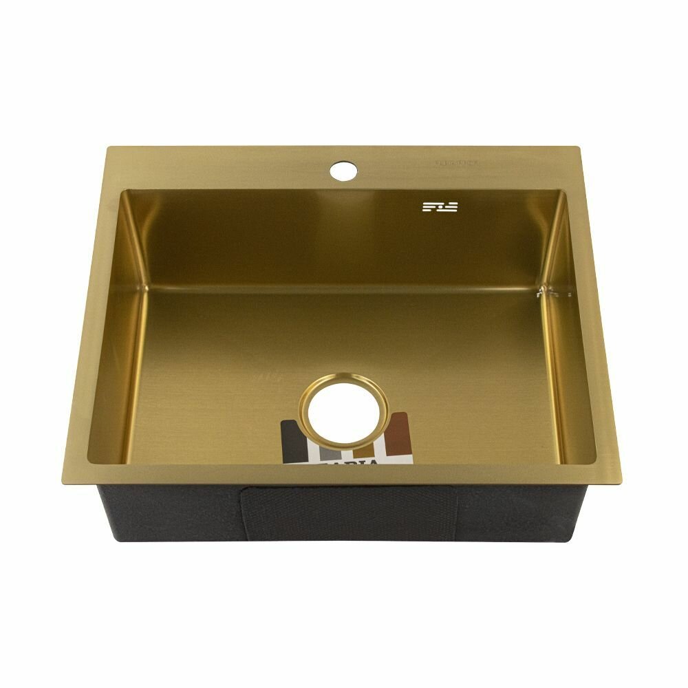 Мойка врезная FABIA PROFI 60х50 см, золото, толщина 3,0 х 1 мм, глубина 200 мм + большой сифон с переливом + корзина 60503Z