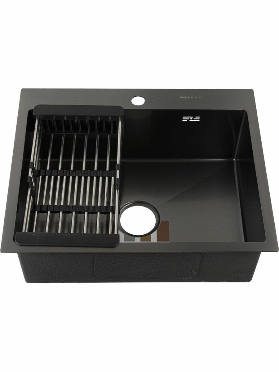 Fabia profi 60503dg мойка врезная 60х50 см графит, декор, толщина 3,0х0,8 мм, глубина 200 мм+большой сифон с переливом+корзина мойка врезная