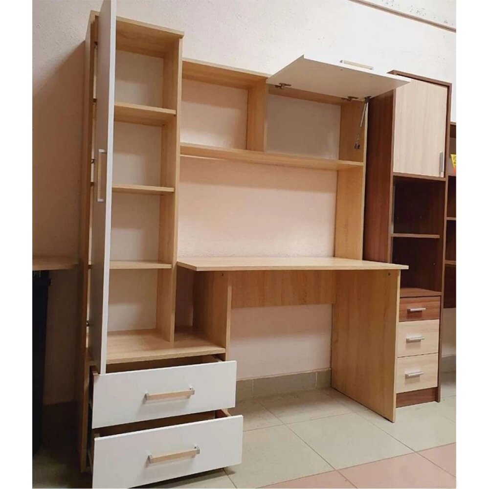 | Плюсы: | Удобный стол сразу со шкафом, явно поместится всё ваше барахло) |