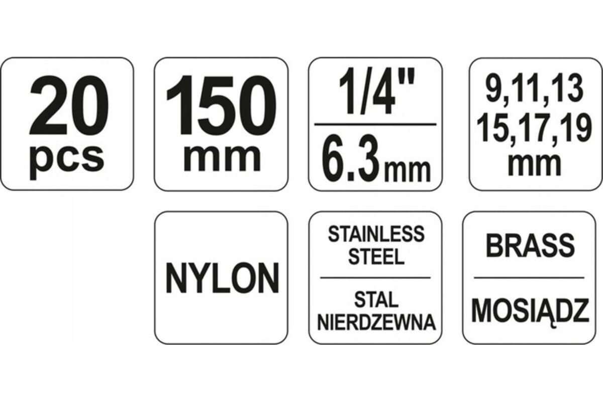 YATO Набор ершей с наружной резьбой 20 предметов в сумке YT-08195
