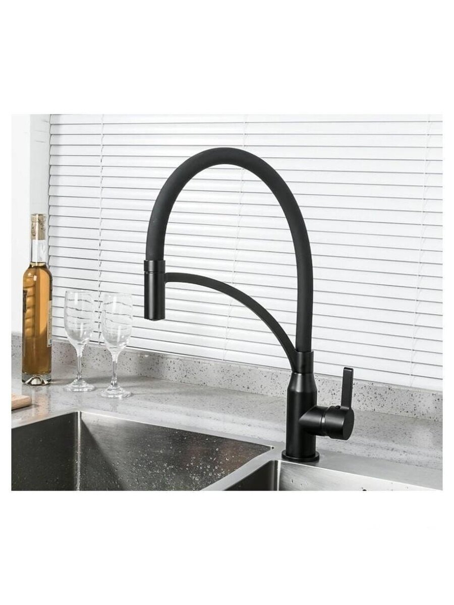 Смеситель для кухни черный матовый с гибким изливом Frap F4552-6