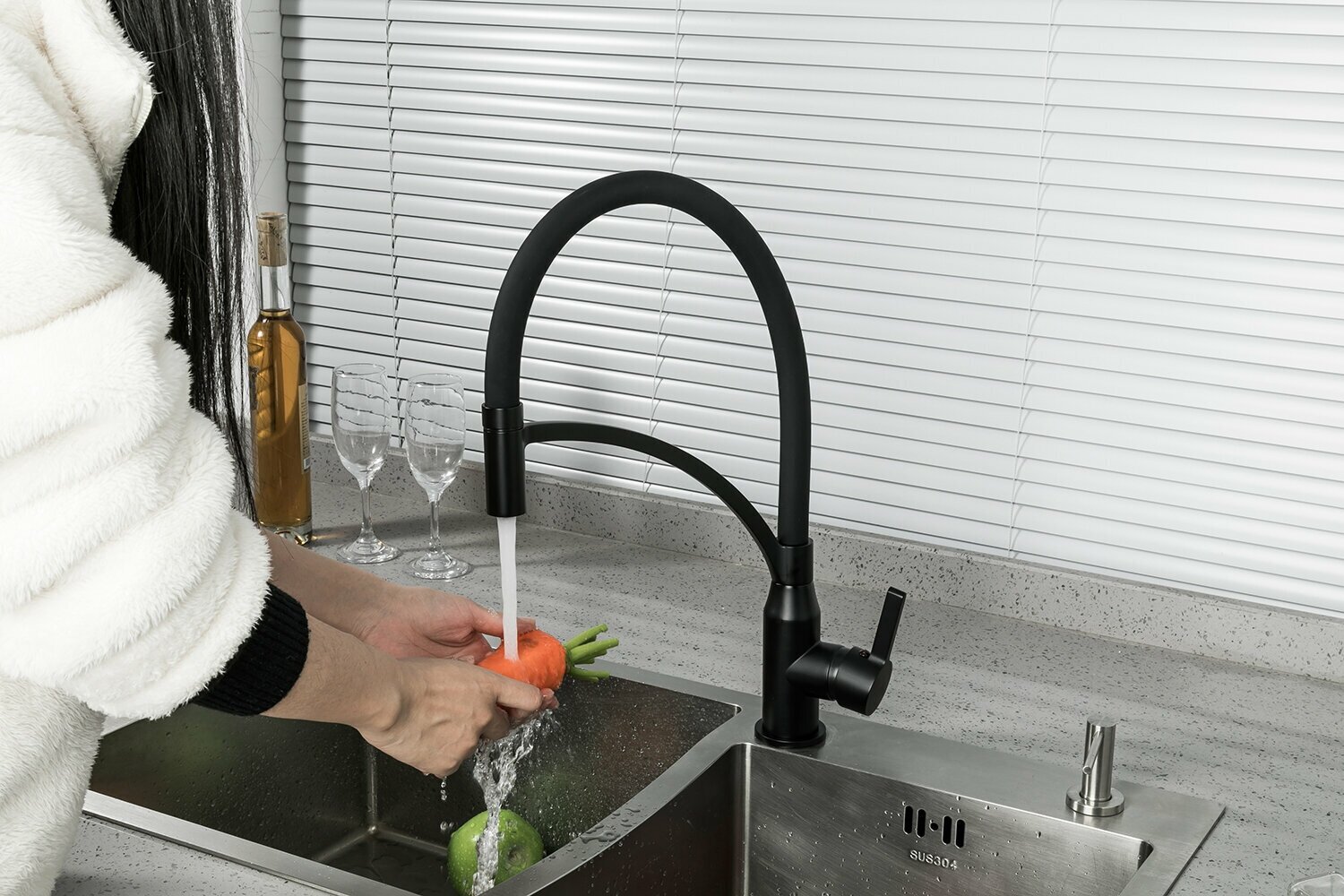 Благодаря гибкому шланг удобно мыть раковину, набирать чайник. |
